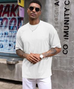 Mens Casual T-Shirts Short Sleeve Lightweight Oversized Summer Cotton Tee Beach Crew Neck Tops