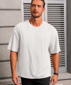 Mens Fashion Short Sleeve Tshirts Workout Oversize Pullover Solid Color Casual Tees