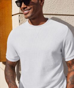 Men’s Waffle T-Shirts Short Sleeve Casual Crew Neck Shirt Summer Plain Pullover Tees