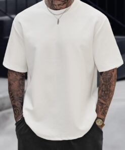 Mens Oversized T-Shirts Heavyweight Cotton Stretch Fashion Thick Tee Tops (S-3XL)