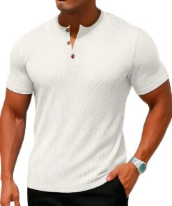 Mens Muscle Henley Shirts Lightweight Workout T-Shirt Gym Tee Athletic Short Sleeve with Button