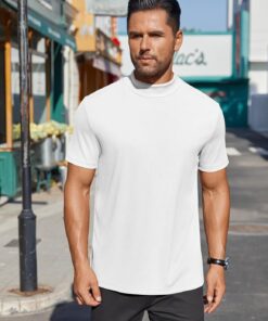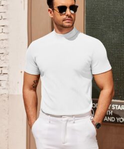 Mens Mock Turtleneck Shirts Short Sleeve Casual Basic T-Shirts Ribbed Solid Pullover Tops