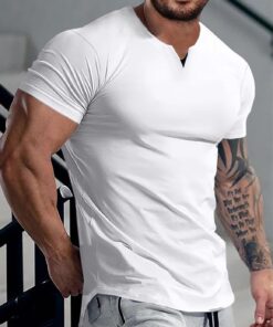 Mens Muscle Slim T Shirts Summer V Neck Gym Shirt Casual Cotton Workout Athletic Longline Tees