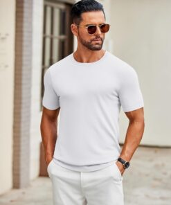 Mens Knit T-Shirts Casual Crewneck Short Sleeve Shirts Summer Tops Basic Pullover Tees