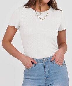 Women Short Sleeve Crewneck Ribbed Knit Slim Fitted Shirts Summer Tops Basic Tee Casual 2026 Spring Outfits Clothes