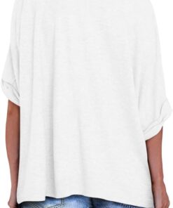 Women’s V Neck T-Shirts Loose Fit Dolman Sleeve Tops Soft Rayon Casual Summer Tunic for Leggings, Travel, Loungewear