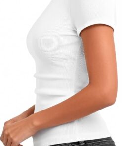 Cotton Ribbed Basic T Shirts for Women,Slim Fit Crew Neck Short Sleeve Summer Shirts,Solid Plain Tops, Undershirts