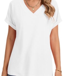 Shirts for Women V Neck Rolled Short Sleeve Tops Summer Business Casual Outfits Beach Vacation Clothes 2026