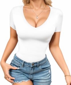 Women’s Long Sleeve Short Sleeve Bodysuit Sexy V Neck Body Suits Fitted Fall Going Out Tops
