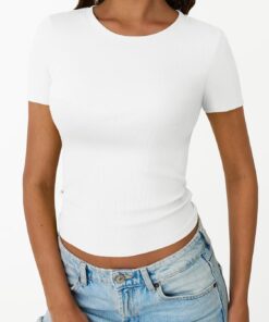 Women’s Crewneck Ribbed Knit Fitted T-Shirt