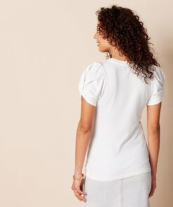 Women’s Regular-Fit Twist Puff Sleeve Crewneck T-Shirt