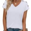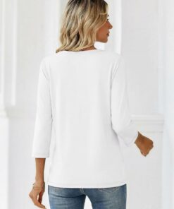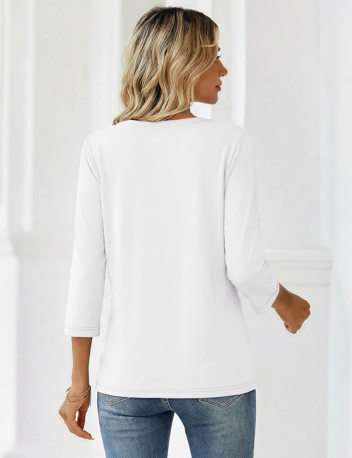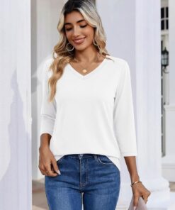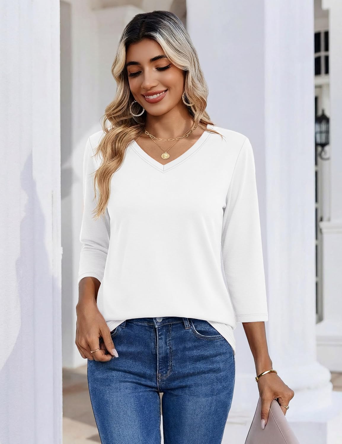3/4 Length Sleeve Womens Tops V Neck T Shirts Dressy Casual Blouses for Women Summer Clothes Cotton Basic Tees