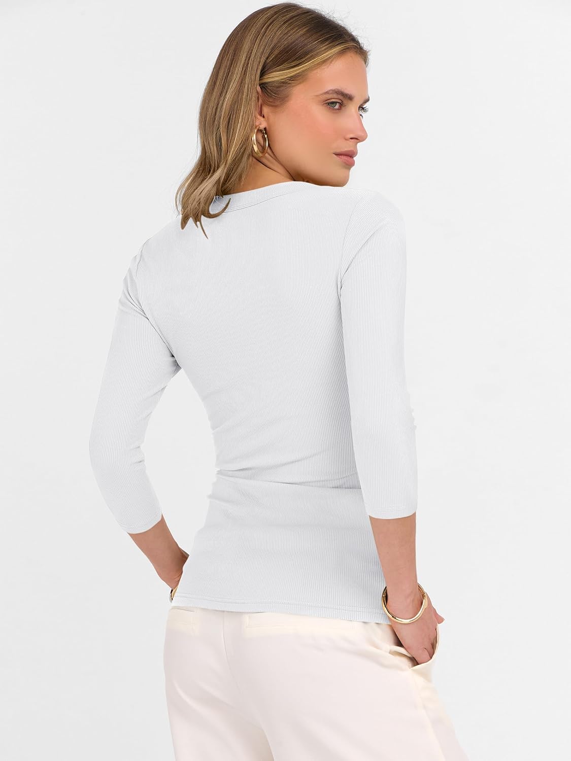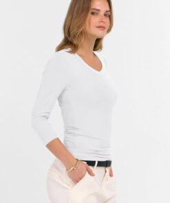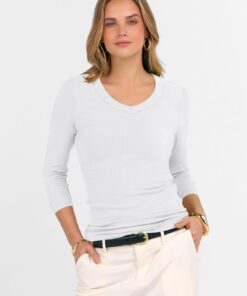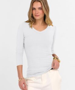 Be the first to review “3/4 Sleeve Shirts for Women V Neck Ribbed Knit Slim Fitted Tops Basic Tshirt 2026 Summer Casual Tees Trendy Outfits” Cancel reply