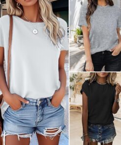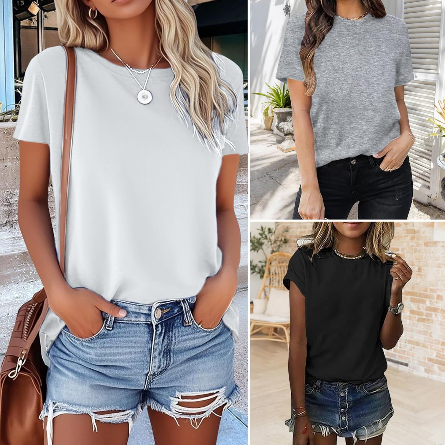 3 Pack Womens Basic T Shirts Summer Tops 2026 Short Sleeve Tees Comfy Casual Vacation Clothes