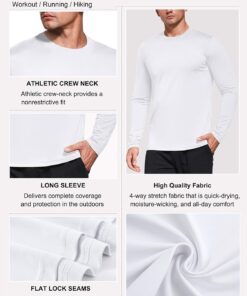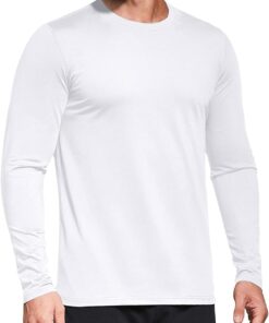 The men’s long-sleeve athletic shirts keep you cool in the summer and can be effortlessly paired up with your workout clothing in the winter while helping protect you from UV Rays making them ideal for use around the year.