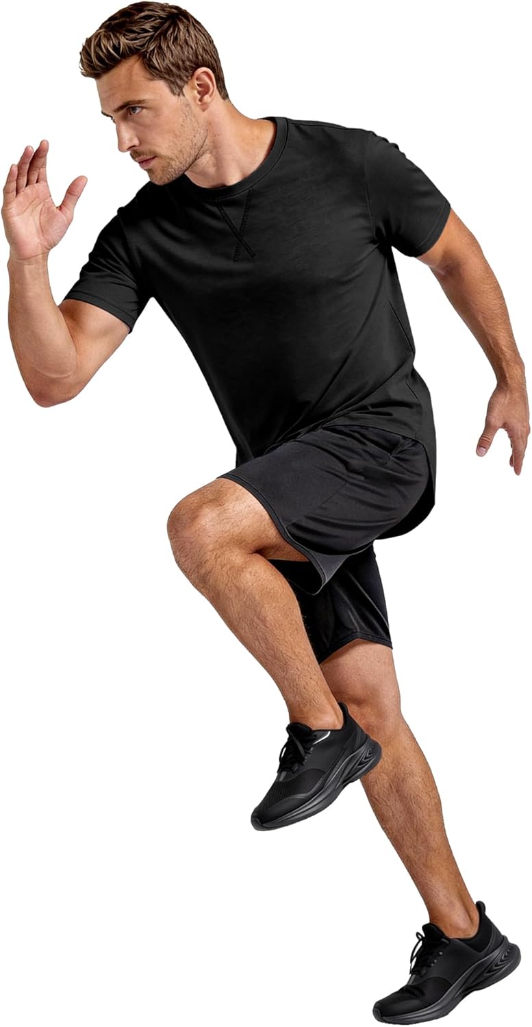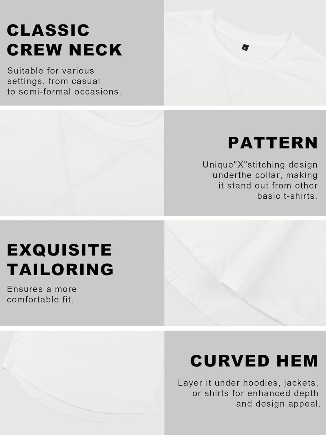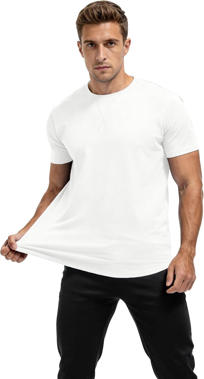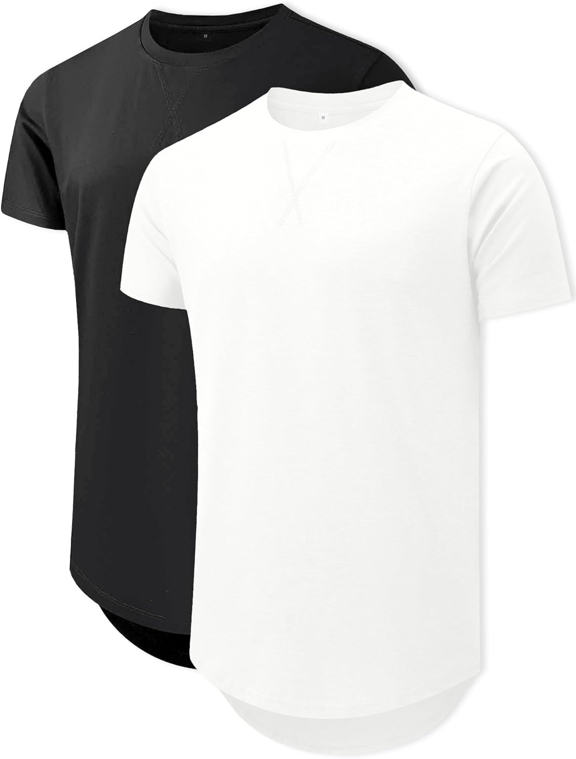 Mens 2 Pack Cotton Crewneck T-Shirts Hipster Hip Hop Longline Tees Shirts