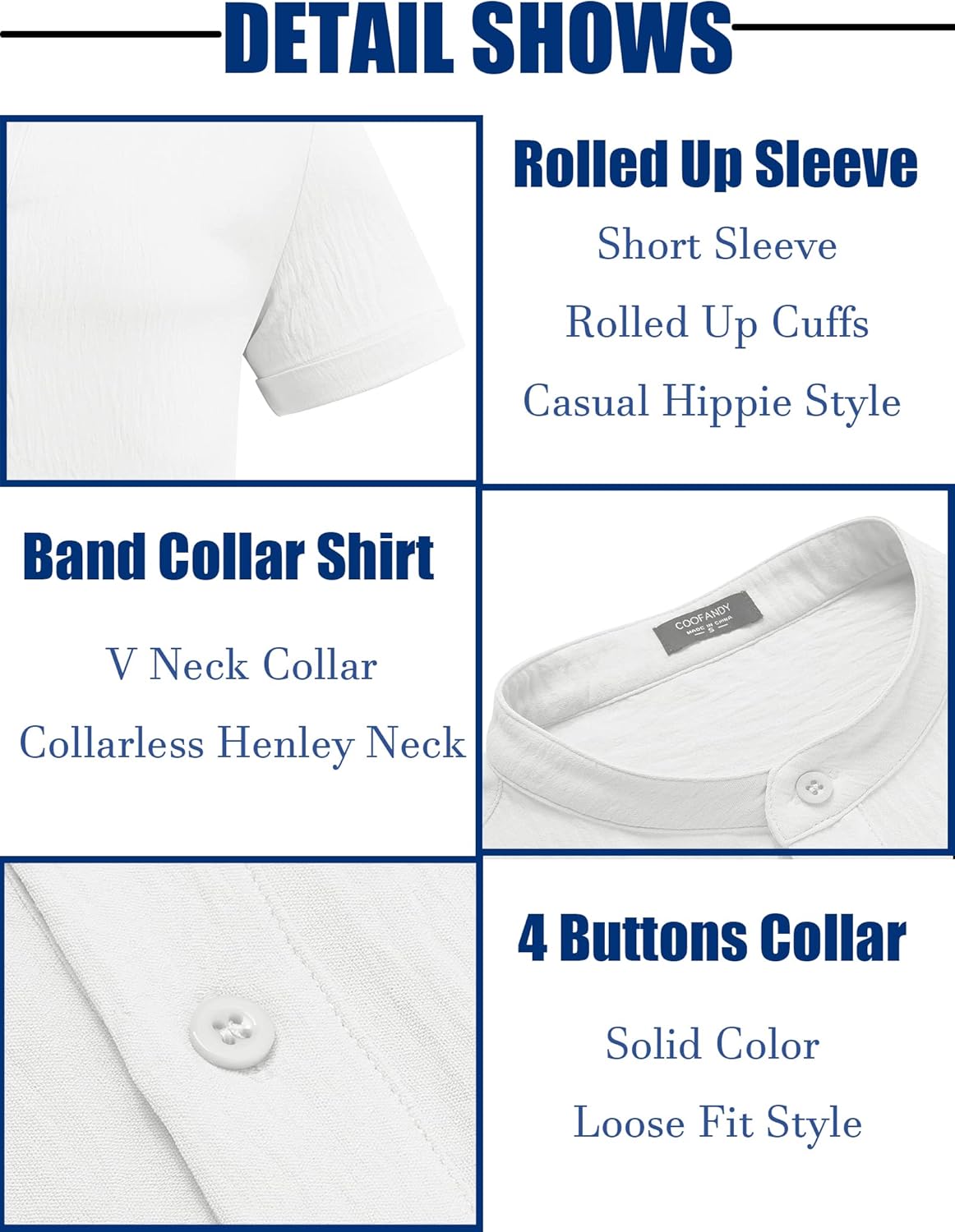 Men’s Casual Henley Shirt Band Collar Short Sleeve Shirt Summer Beach Hippie T-Shirt