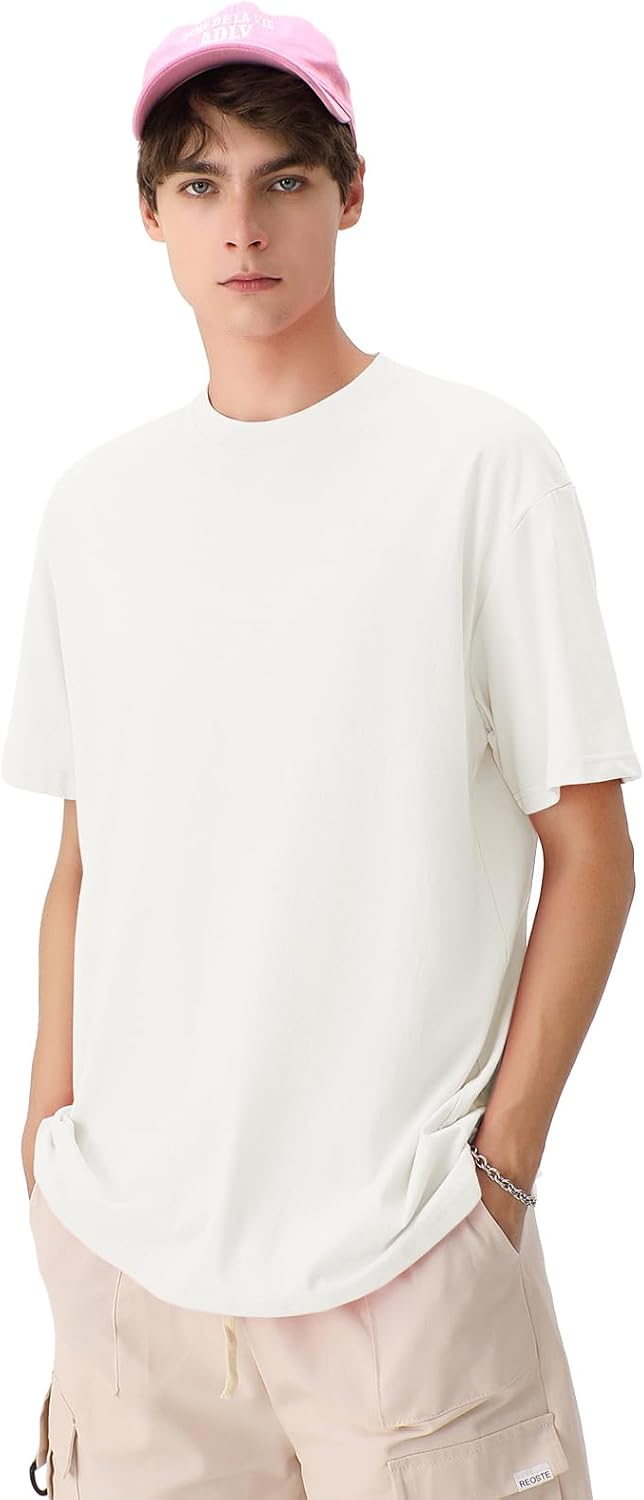 Men’s Cotton T-Shirts Oversized Unisex Short Sleeve Crew Neck Loose Basic Tops Solid Athletic Tee