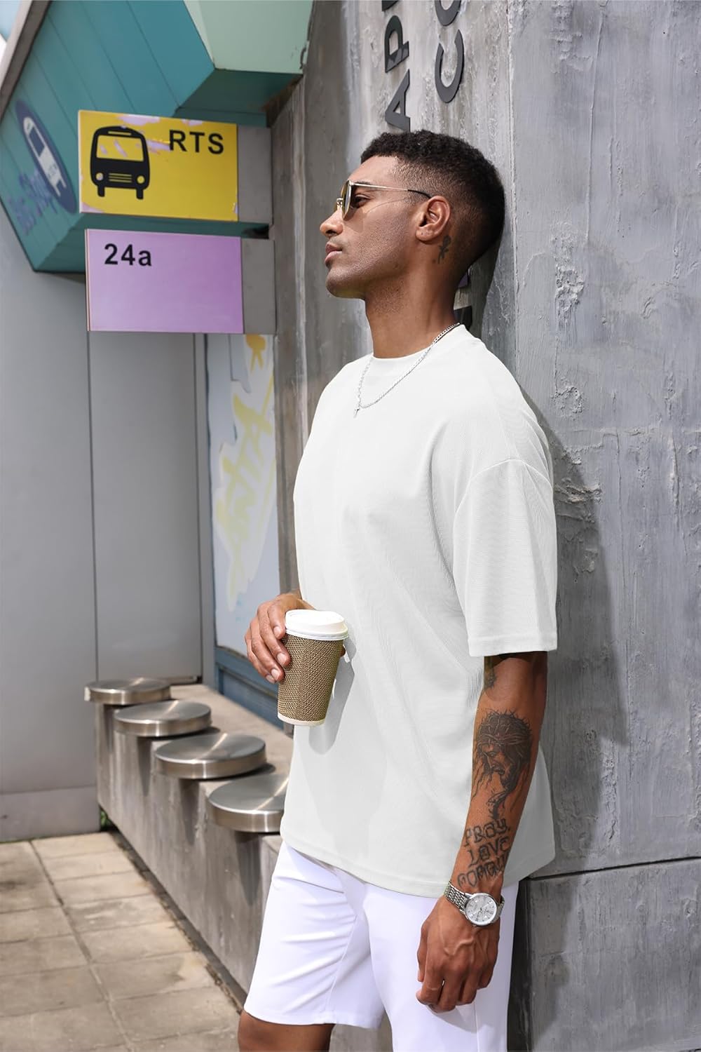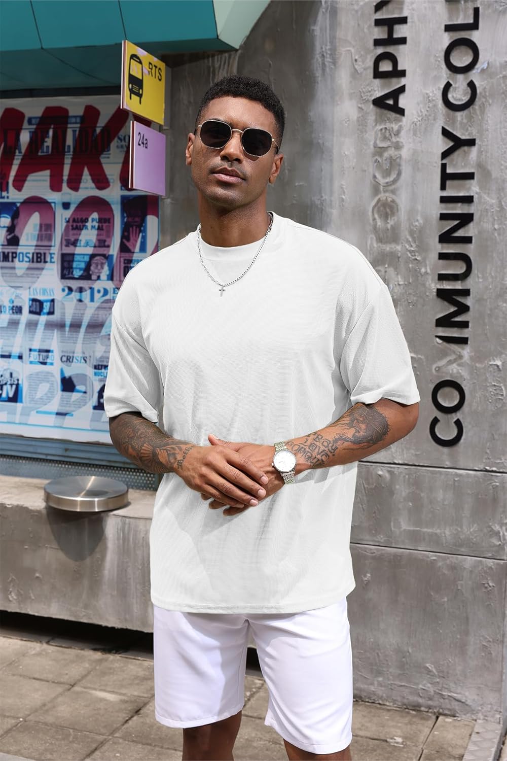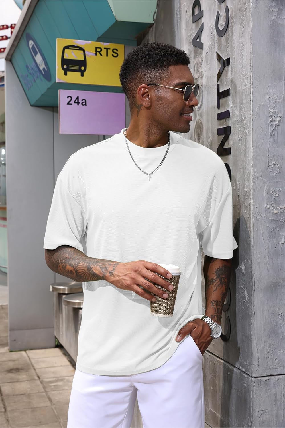 Mens Fashion Short Sleeve Tshirts Workout Oversize Pullover Solid Color Casual Tees