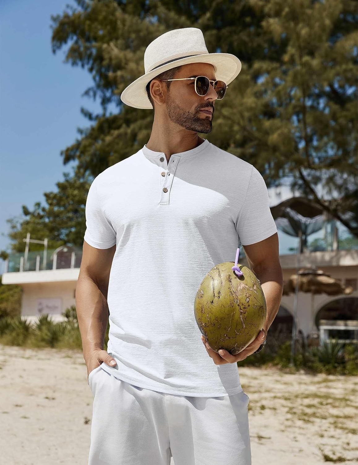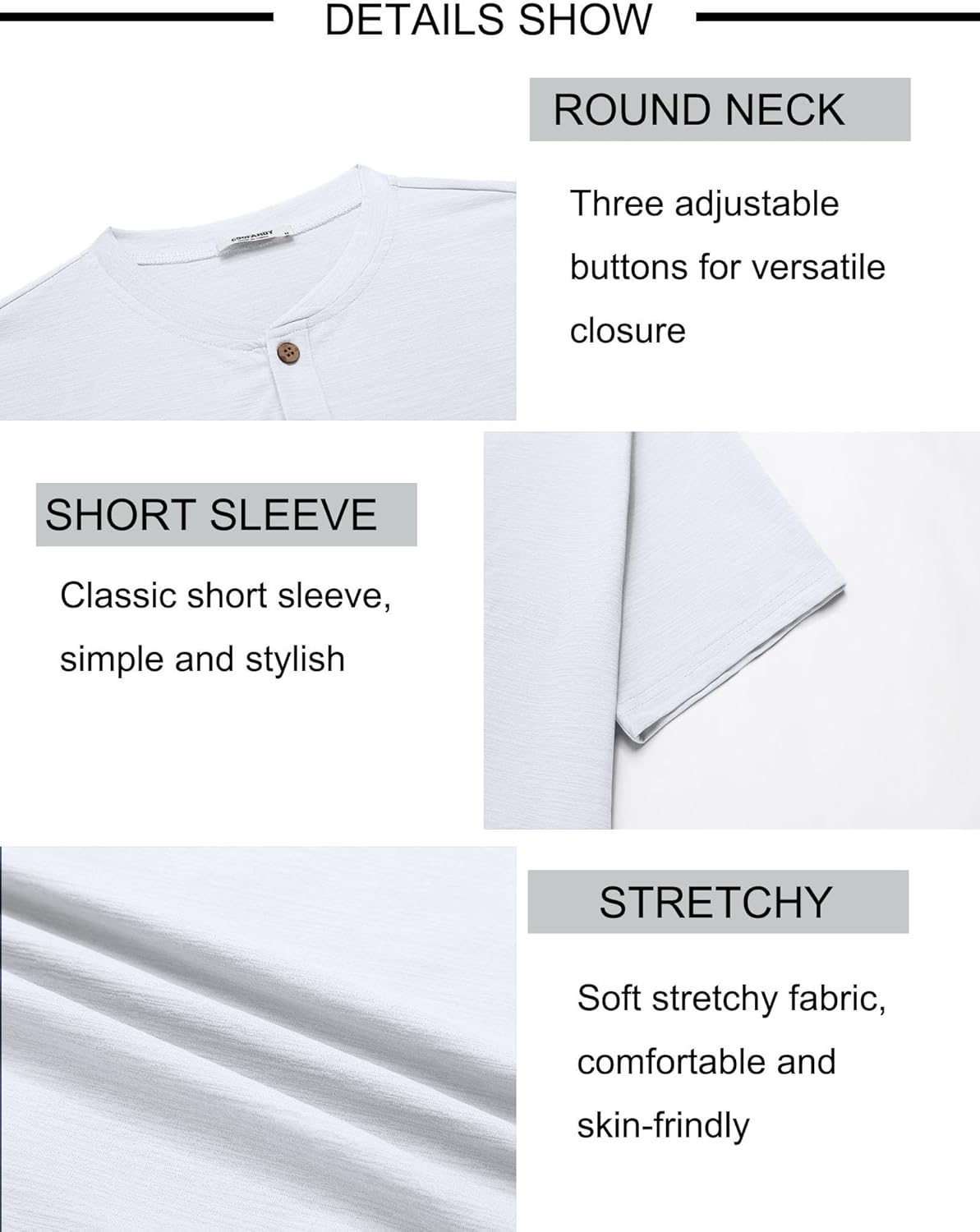 Mens Henley Shirts Short Sleeve Casual Stylish Tshirt Lightweight Summer Basic Tee Tops