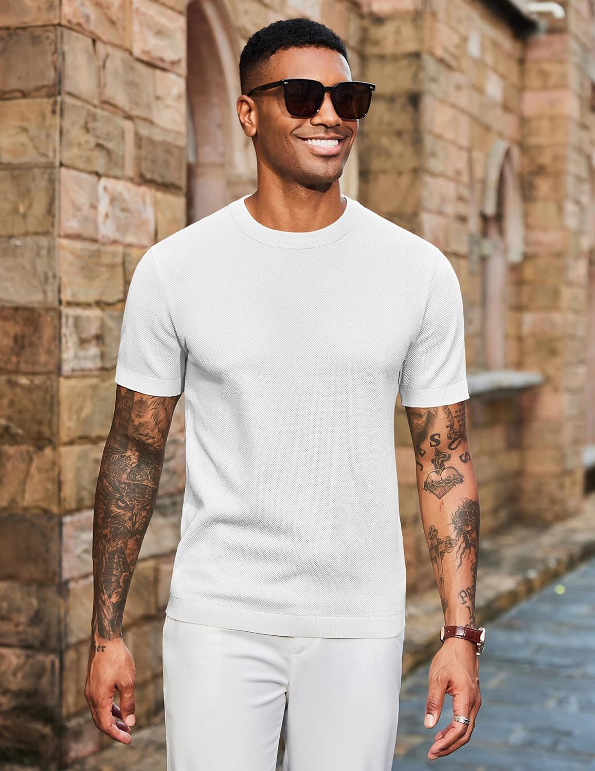 The lightweight T-Shirts material is soft and comfortable. The knit tshirt is breathable and stretchable, combines style, comfort, and versatility, making it an ideal choice for various occasions. Suitable for spring, summer, and fall.