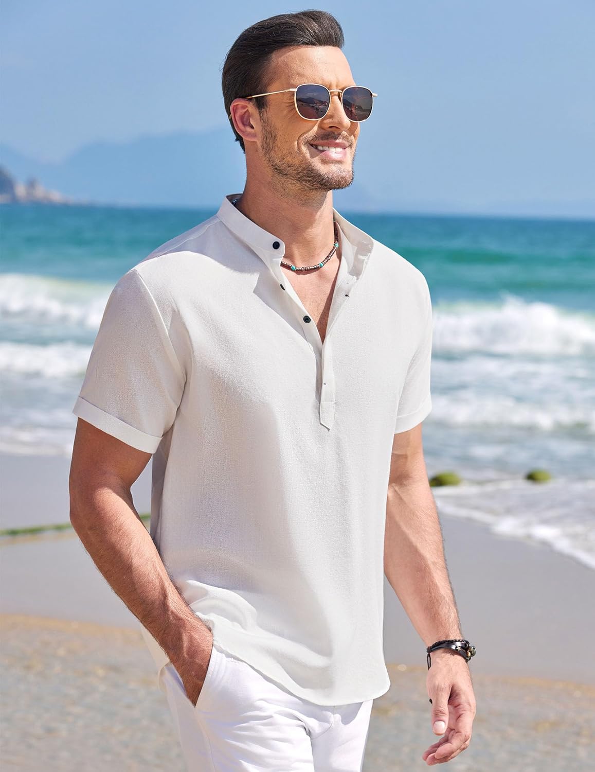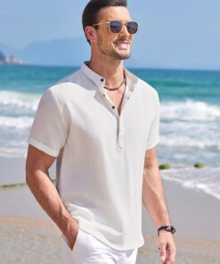 Men’s Linen Henley Shirt Short Sleeve Casual Summer Beach Hippie T Shirts