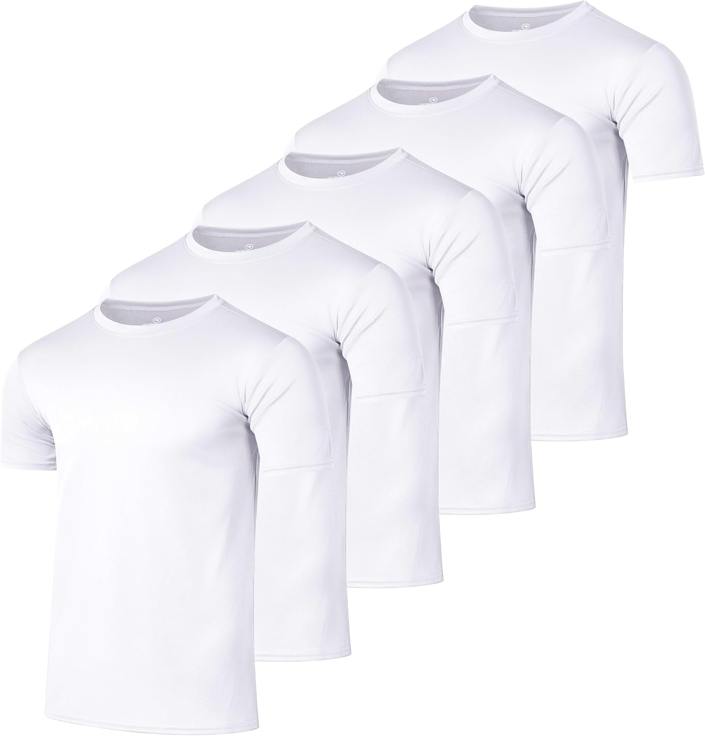 Experience all-day comfort with this Real 5 Pack of Men??s Mesh Crew Neck T-Shirts. Built with lightweight, quick-drying fabric, these tees move moisture away from your skin so you stay cool, clean, and confident through every workout, round of golf, or casual day out. The breathable mesh knit provides constant ventilation, while the smooth mesh texture feels soft and comfortable against your skin. Designed with an athletic cut and raglan sleeves, each shirt allows full freedom of movement whether you’re lifting weights, running outdoors, or simply relaxing at home. The 4-way stretch tech fabric keeps its shape wash after wash, offering long-lasting wear that fits perfectly from Small to Big & Tall sizes like 3XLT, 4XLT, and 5XLT. Flatlock seams prevent irritation during intense training sessions, and the crew neck design maintains a classic, clean look that pairs easily with shorts, joggers, or jeans. These shirts also deliver UPF 50+ protection to safeguard your skin during outdoor workouts or sunny hikes. Perfect for gym sessions, work shifts, or weekend activities, this athletic multipack delivers maximum value and . Whether you need moisture-wicking undershirts for layering or stylish tops for everyday wear, Real gives you the perfect balance of tech, comfort, and versatility. mens shirts, t-shirts, big and tall, tee, pack, black, workout shirt, gym, men’s work, dry fit, active, cool, athletic tees, running, golf, quick dry, moisture wicking, mesh, polyester, crew neck, sport, fitness, activewear, 4xlt, 3xlt, 5xlt, camiseta para hombres, camisetas deportivas, deportiva.