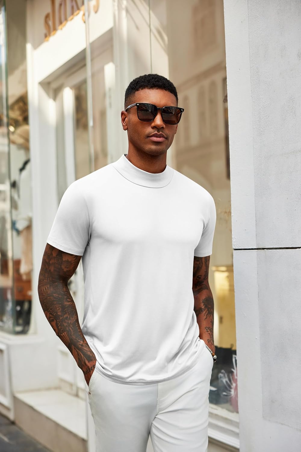 Men’s Mock Turtleneck T Shirt Short Sleeve Slim Fit Basic Casual Solid Color Pullover Tee