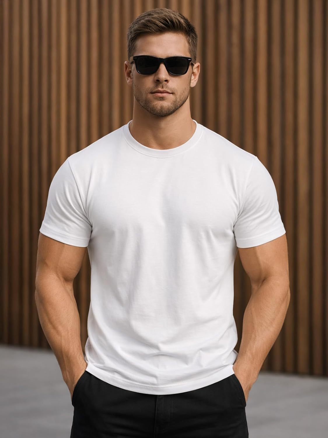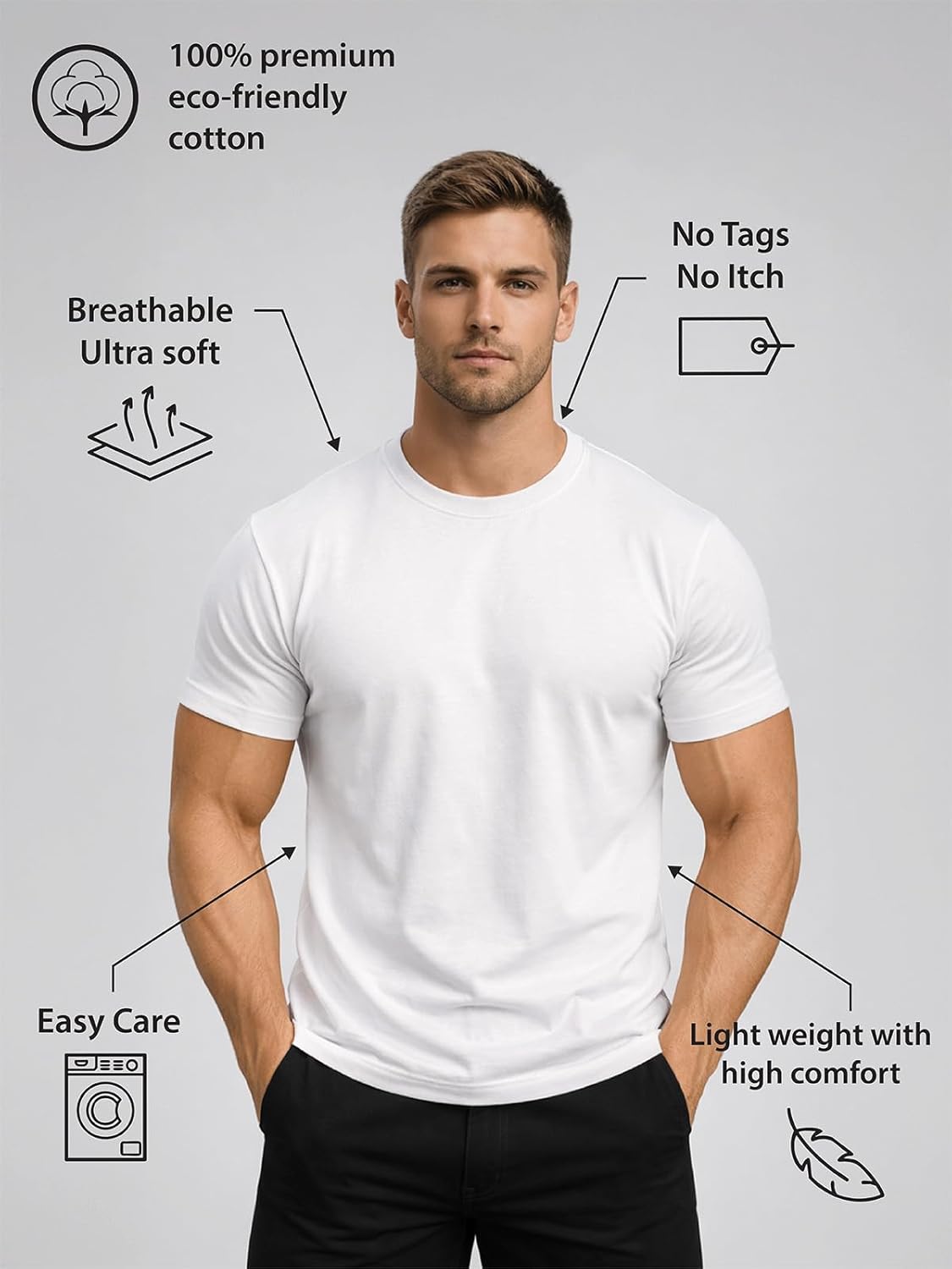Men??s Multicolor Solid Pure Cotton Half Sleeve Crew Neck T-Shirt, Soft Casual Wear for Daily Comfort (S?C3XL)