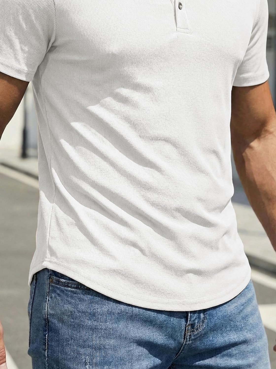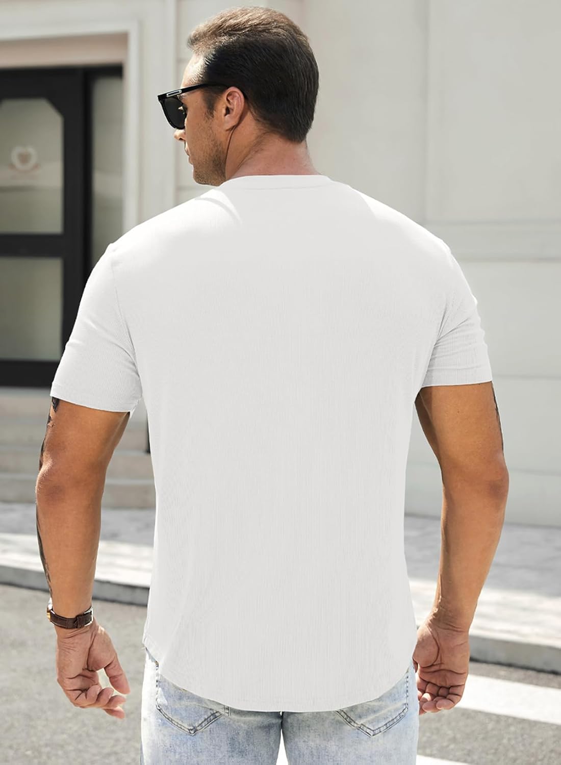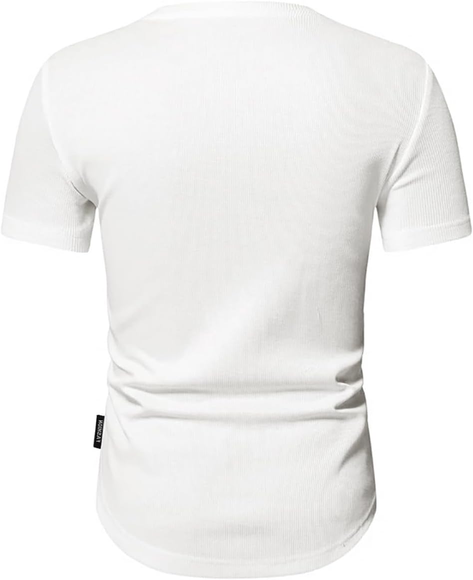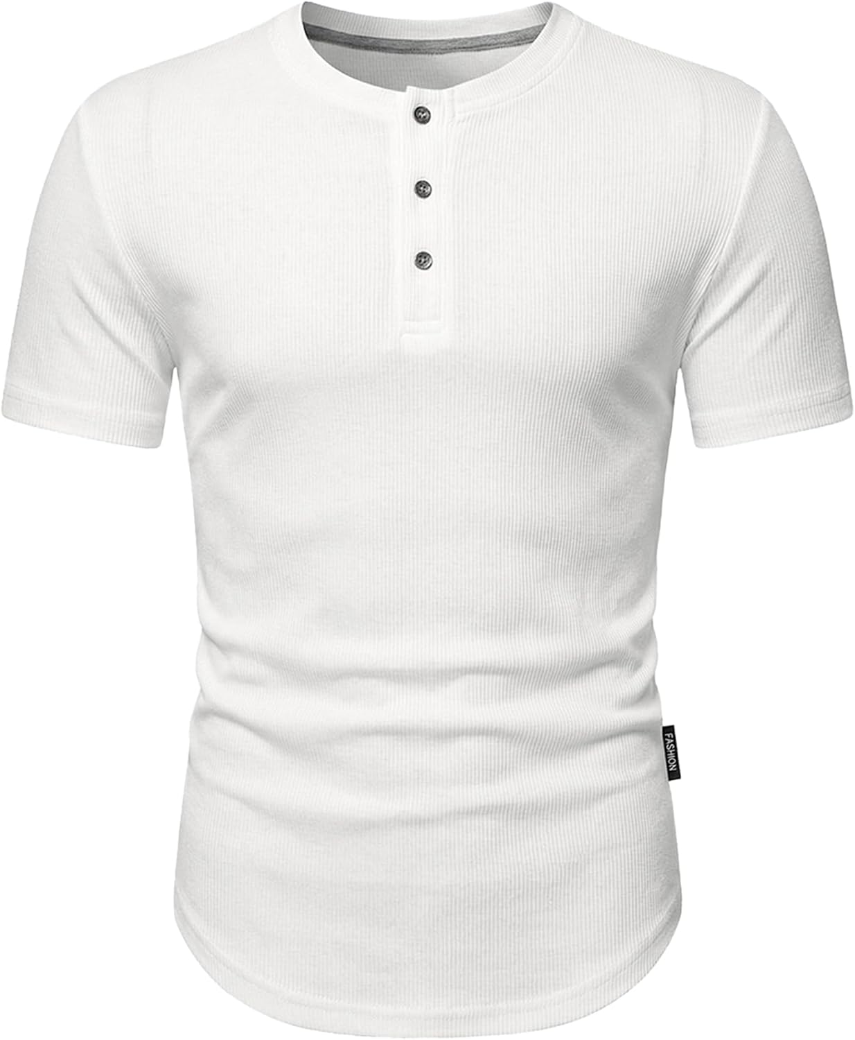 Men’s Muscle Slim Henley Shirts Crewneck Longline T-Shirt Gym Workout Athletic Shirt Tees with Button