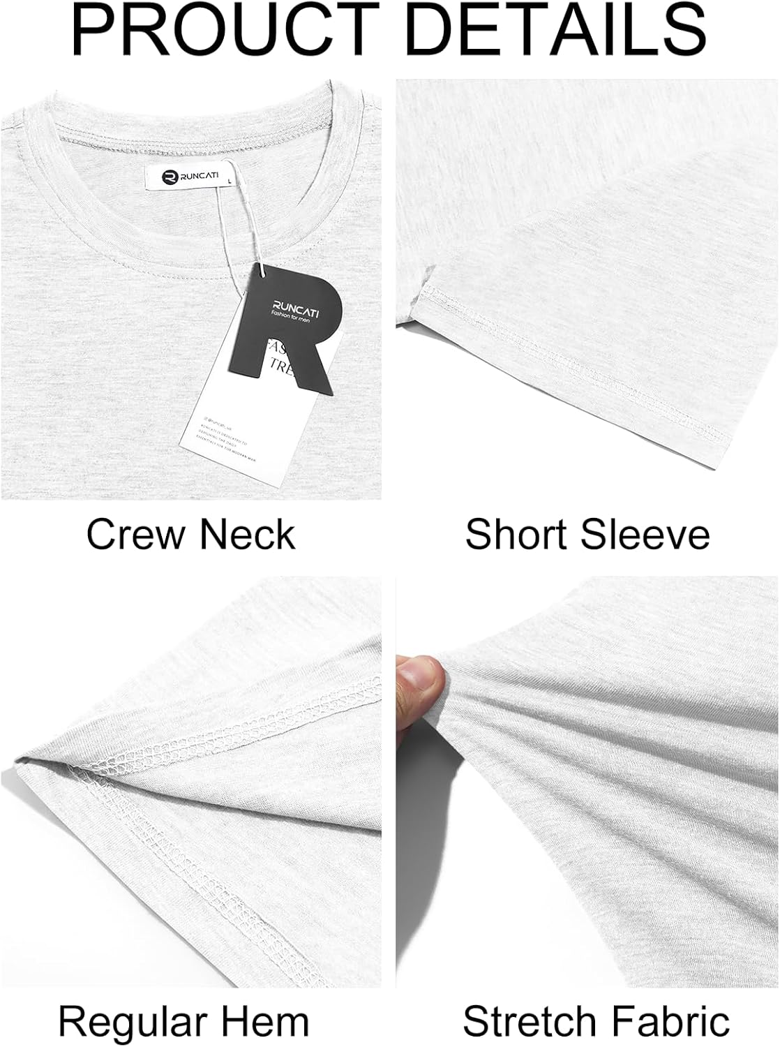 Mens Short Sleeve T-Shirts Classic Crew Neck Casual Shirt Summer Basic Lightweight Fashion Moisture Wicking Tees