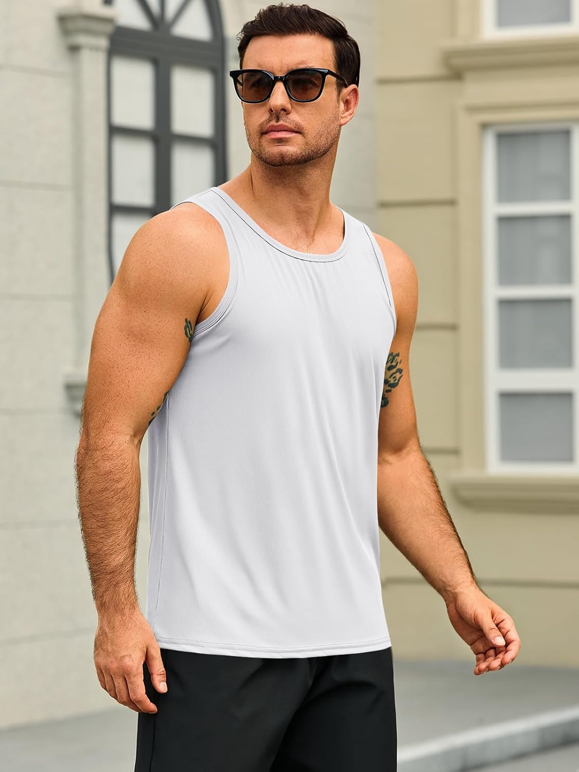 Mens Sleeveless Tank Tops Workout Muscle Gym Ribbed Shirt Athletic Bodybuilding Moisture Wicking T Shirts
