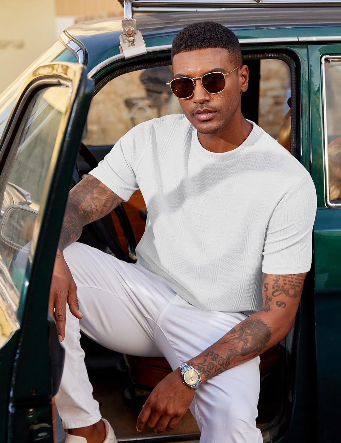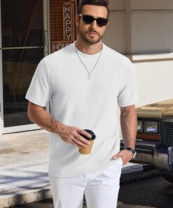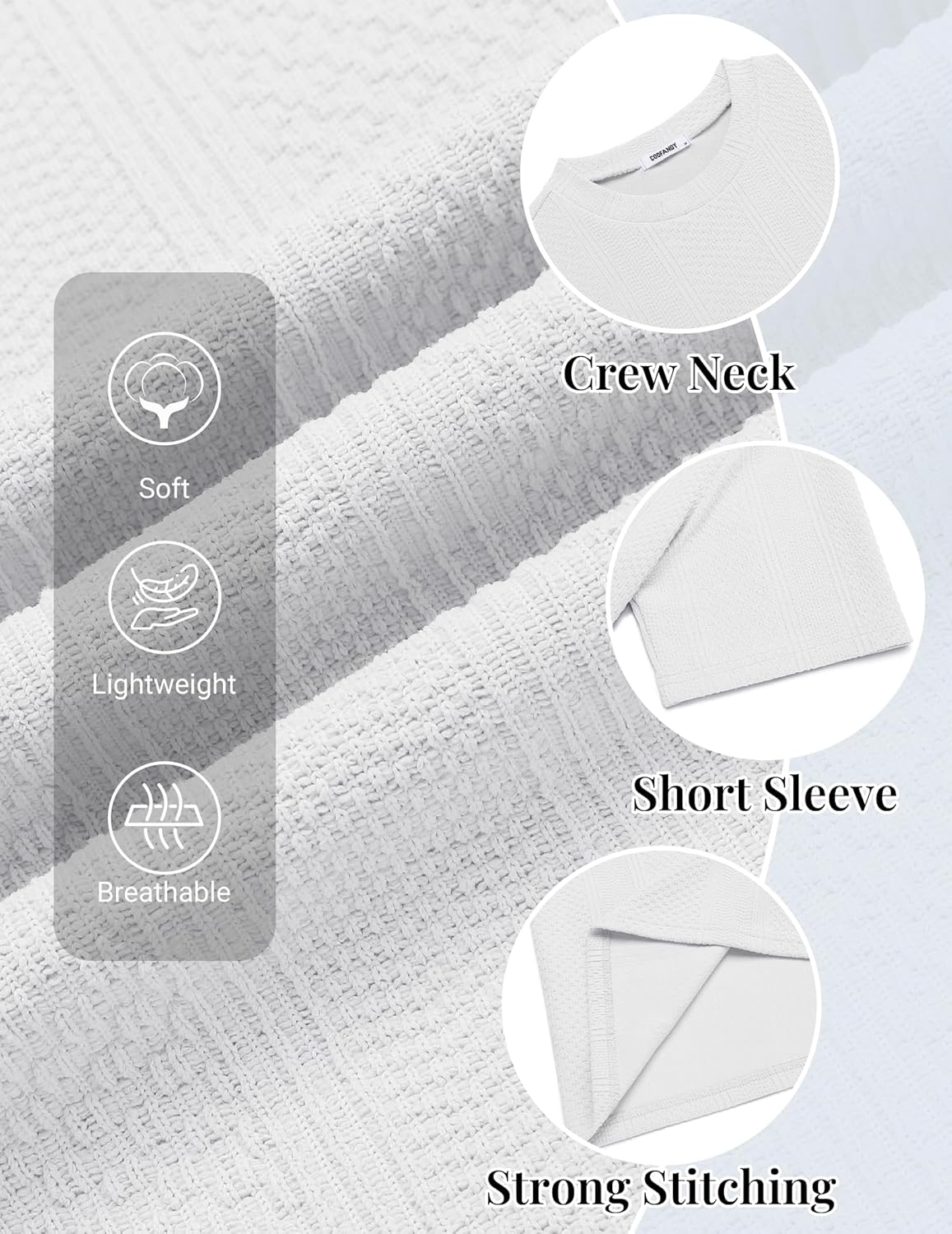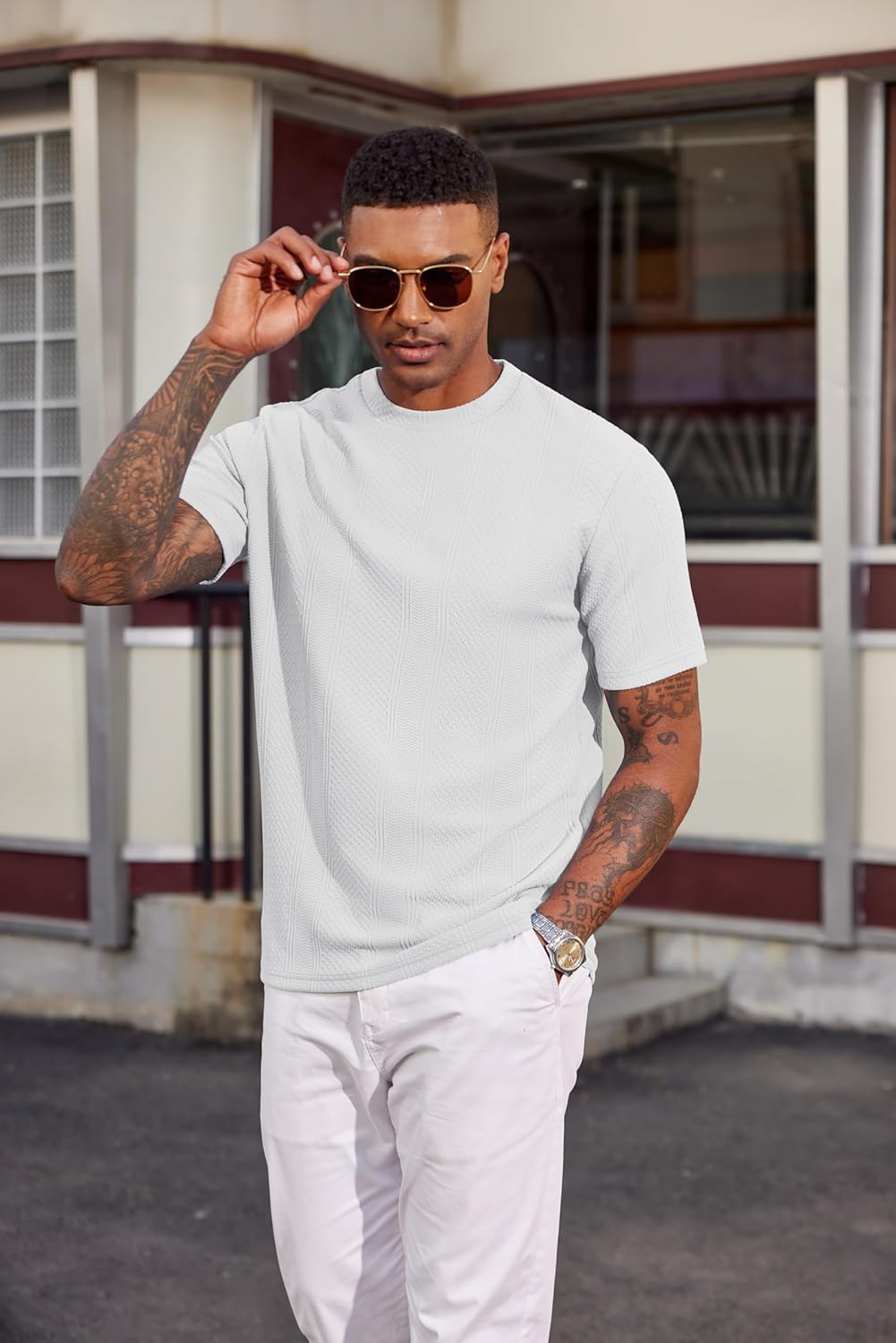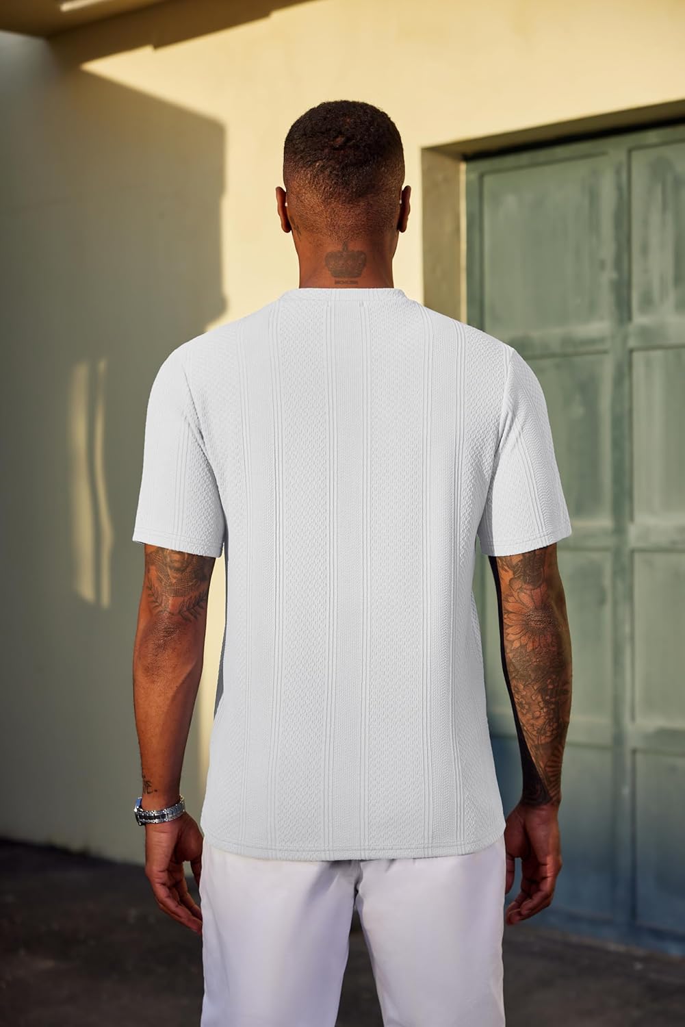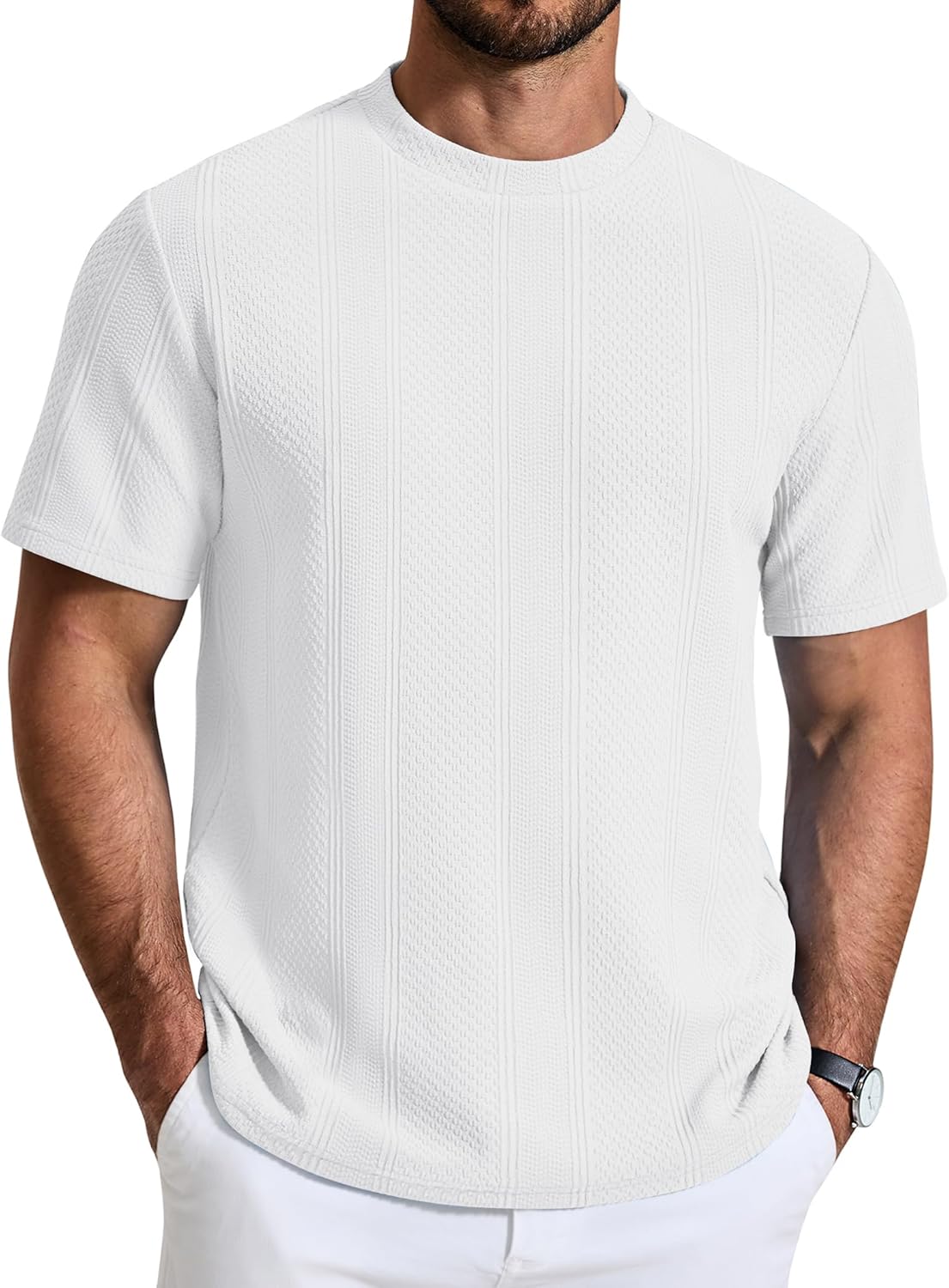 Men’s T-Shirt Short Sleeve Crew Neck Textured Shirts Classic Knit Pullover Tees