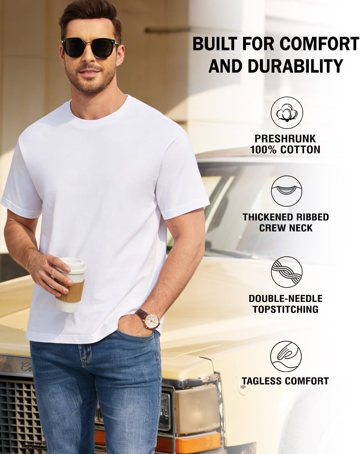 Men’s T-Shirts 100% Cotton Crewneck Short Sleeve Tees Casual Plain Mens T Shirts