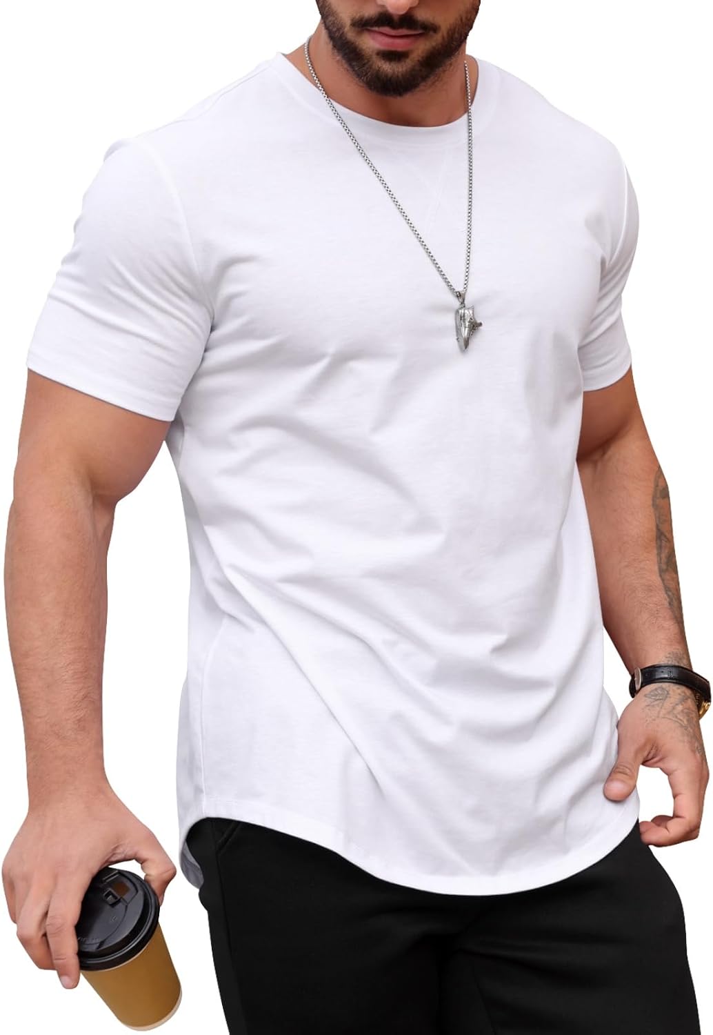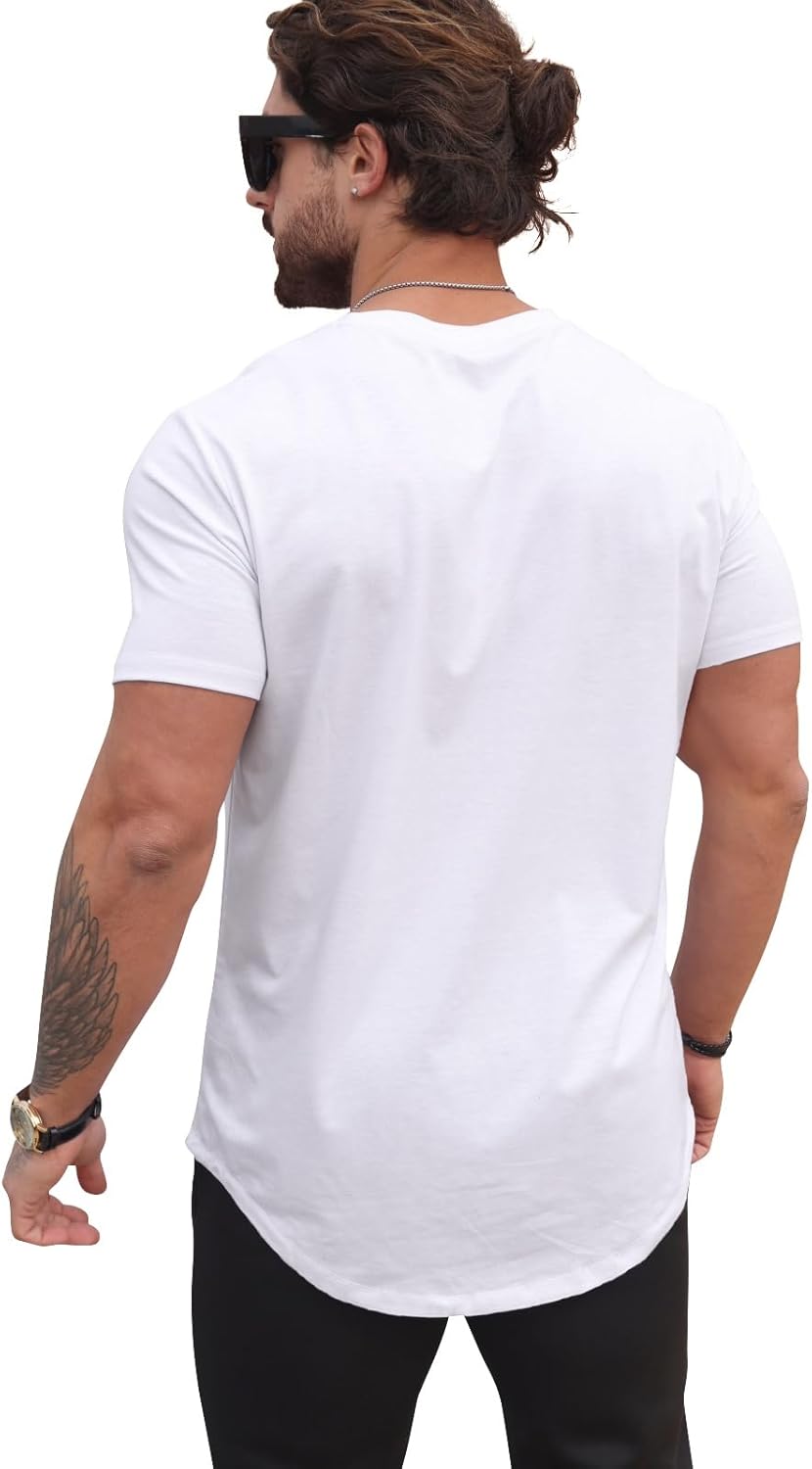 Mens T Shirts Casual Hipster Hip Hop Longline Crewneck Tee Shirts