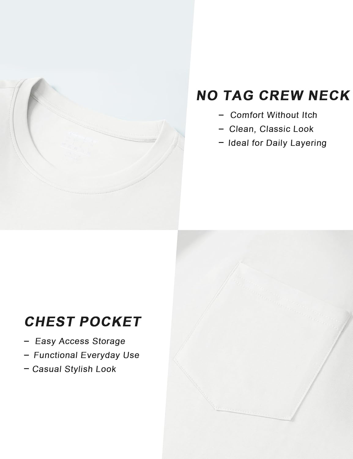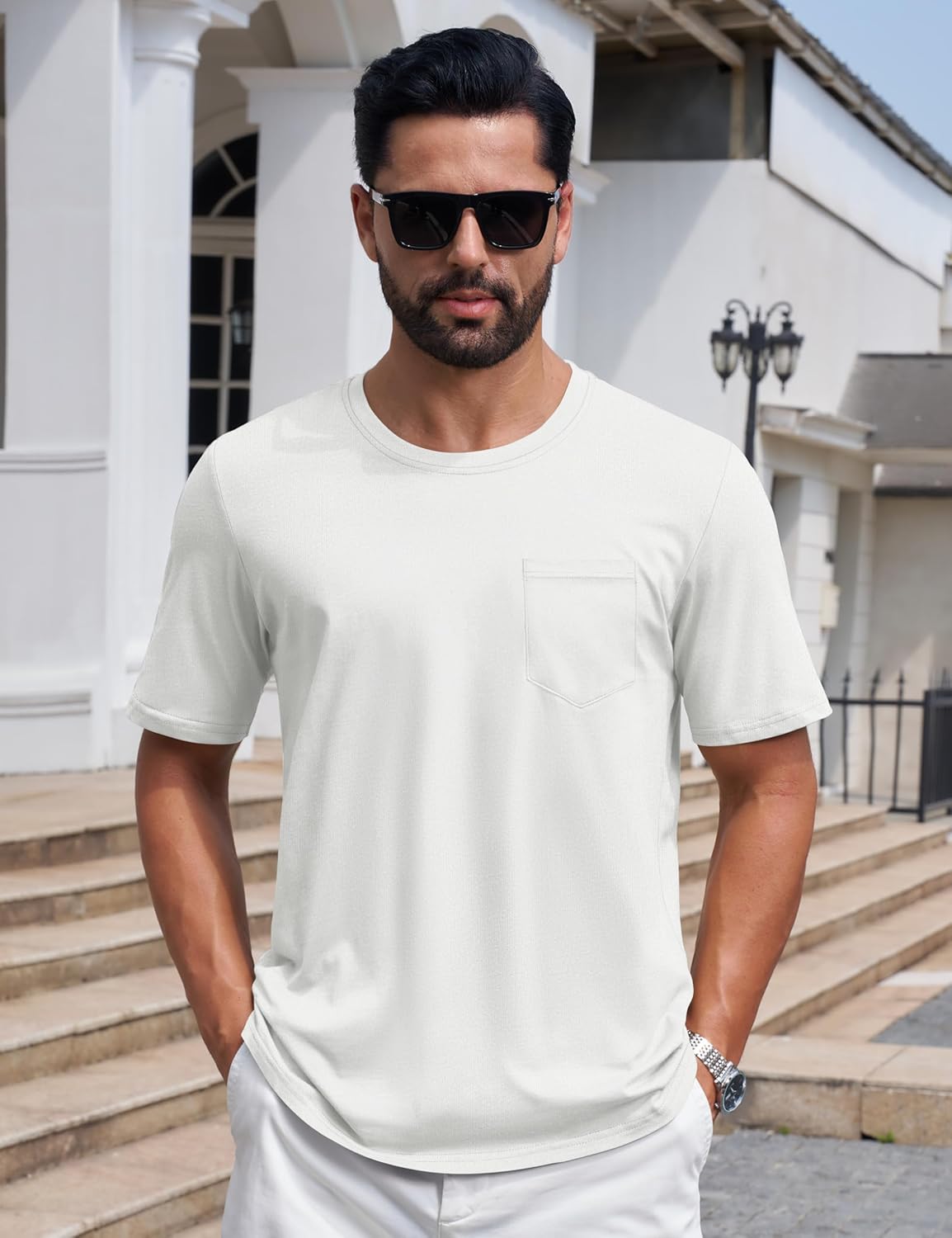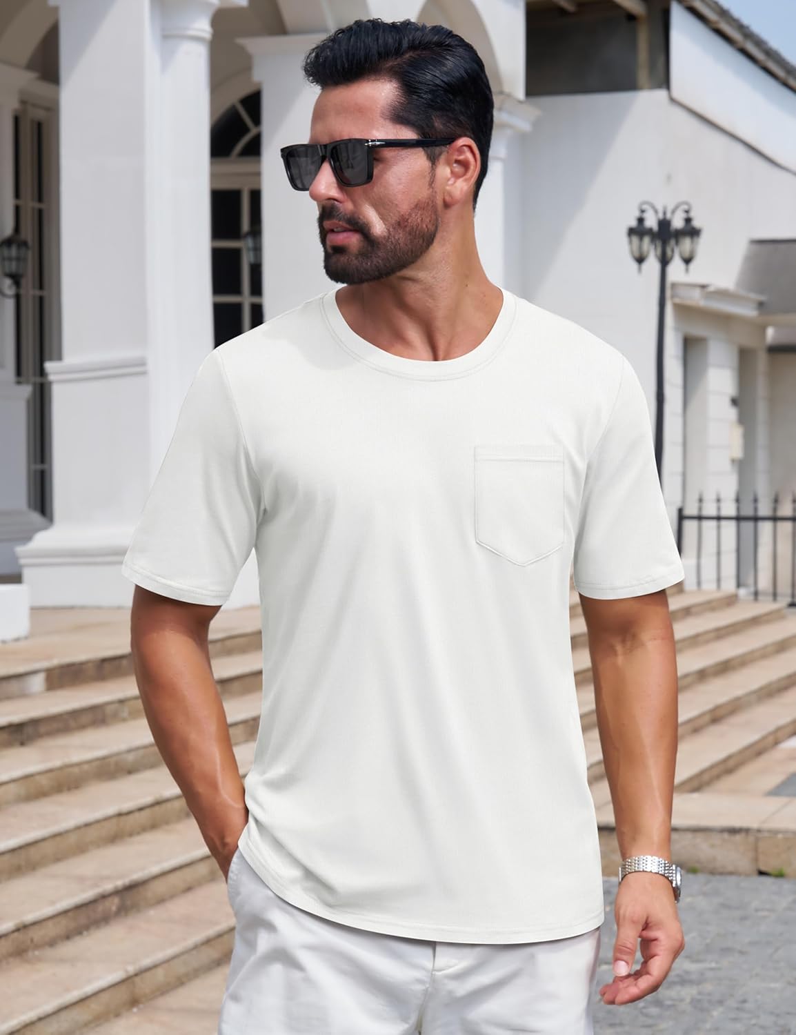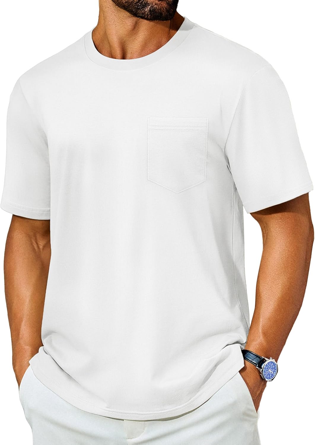Mens T-Shirts Cotton Short Sleeve Pocket Tee Shirt Casual Crew Neck Moisture Wicking Soft Basic T Shirts