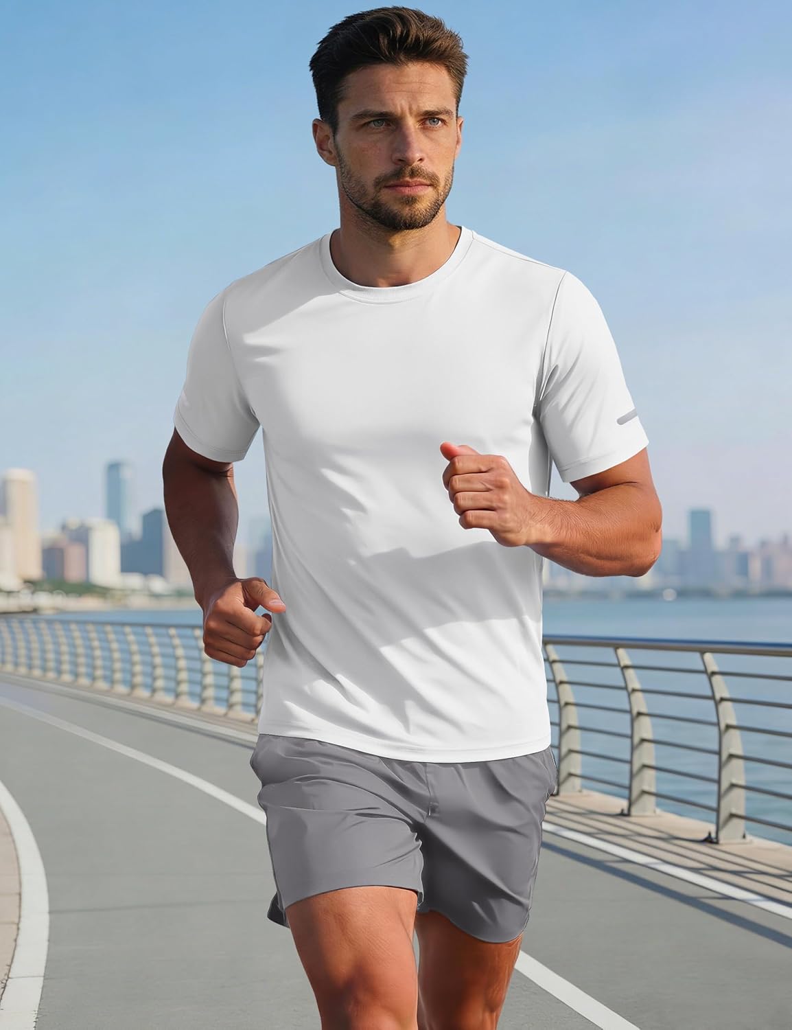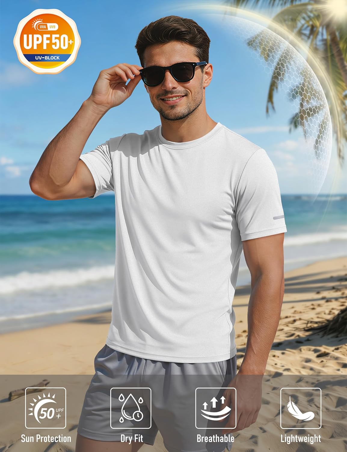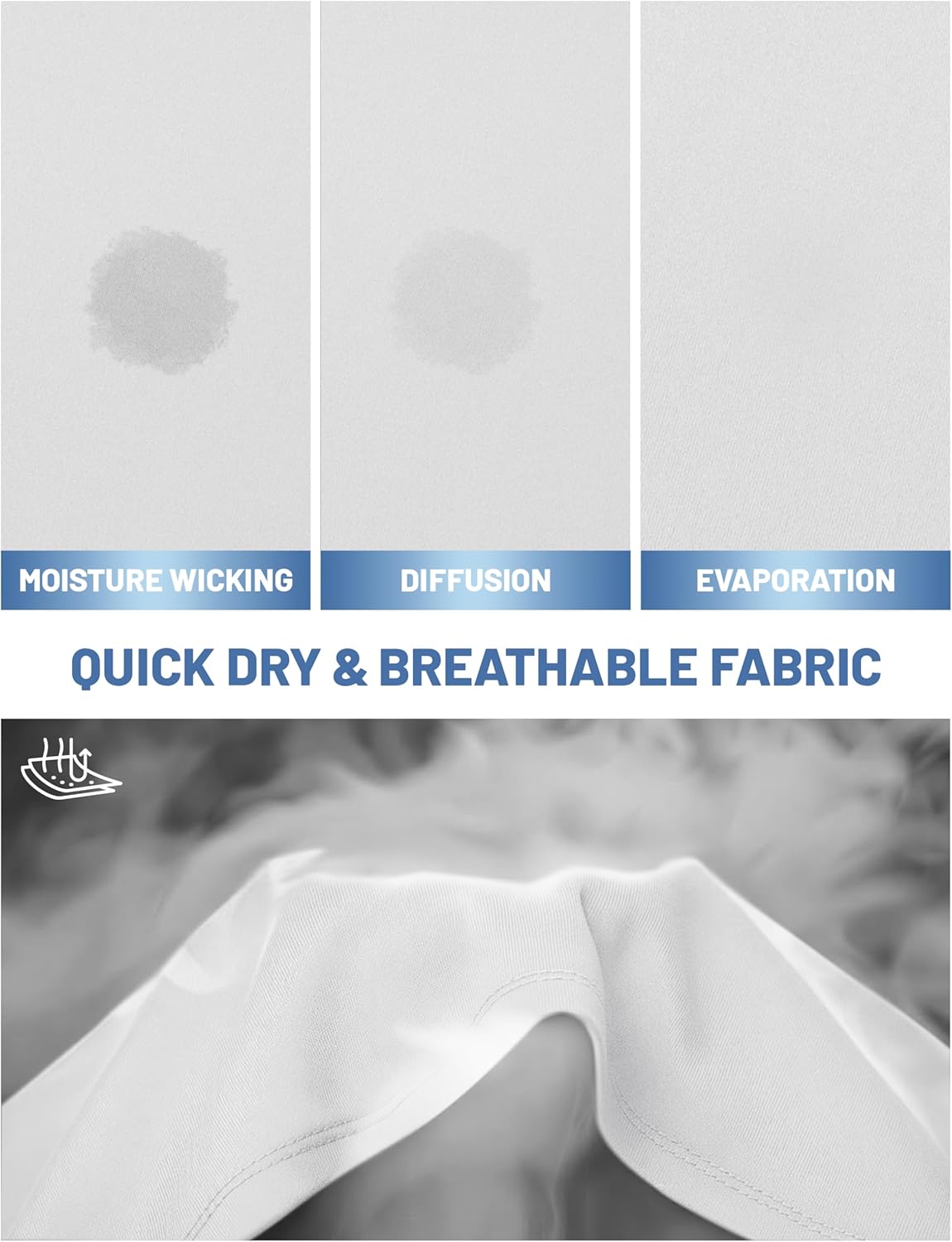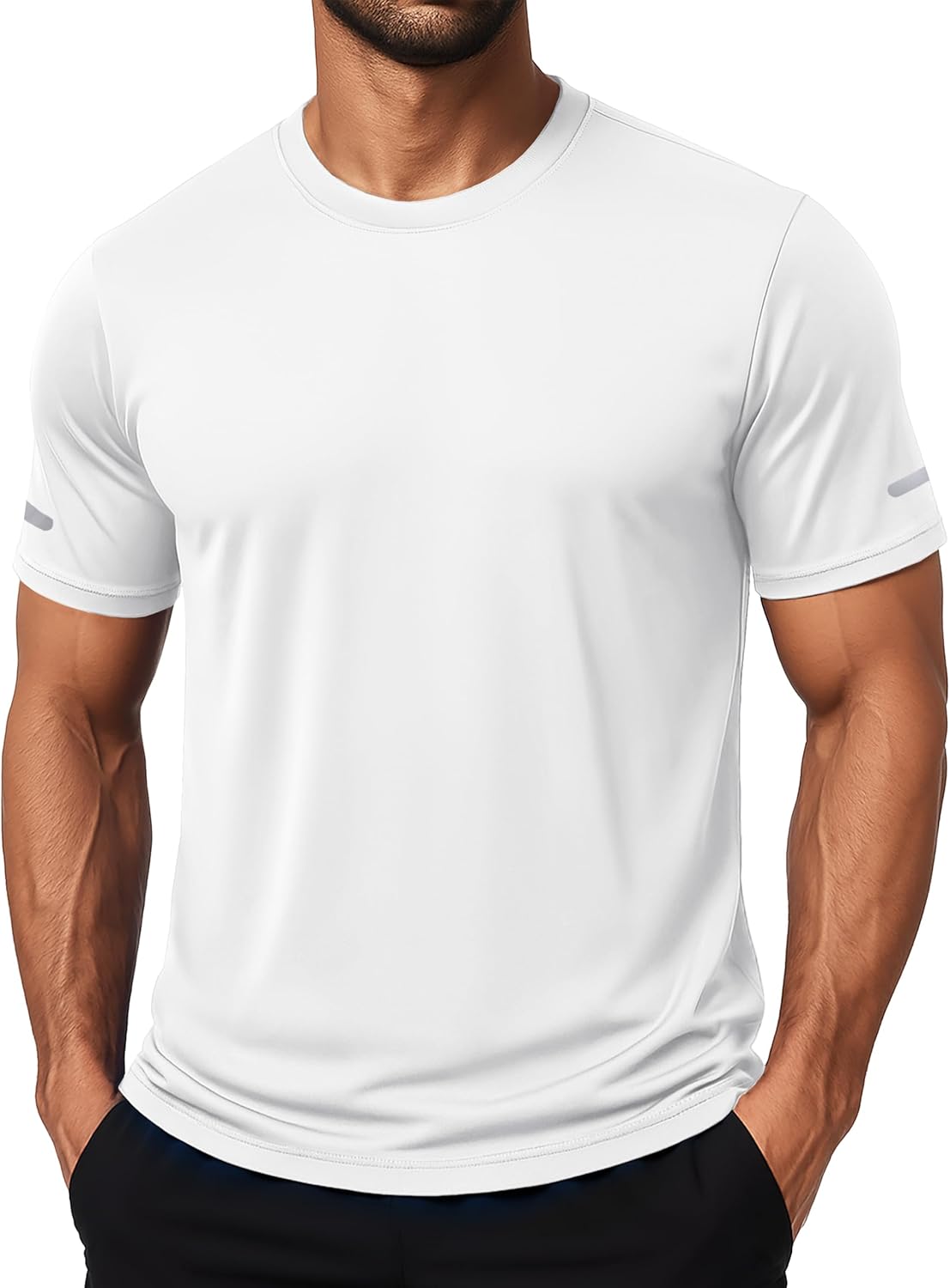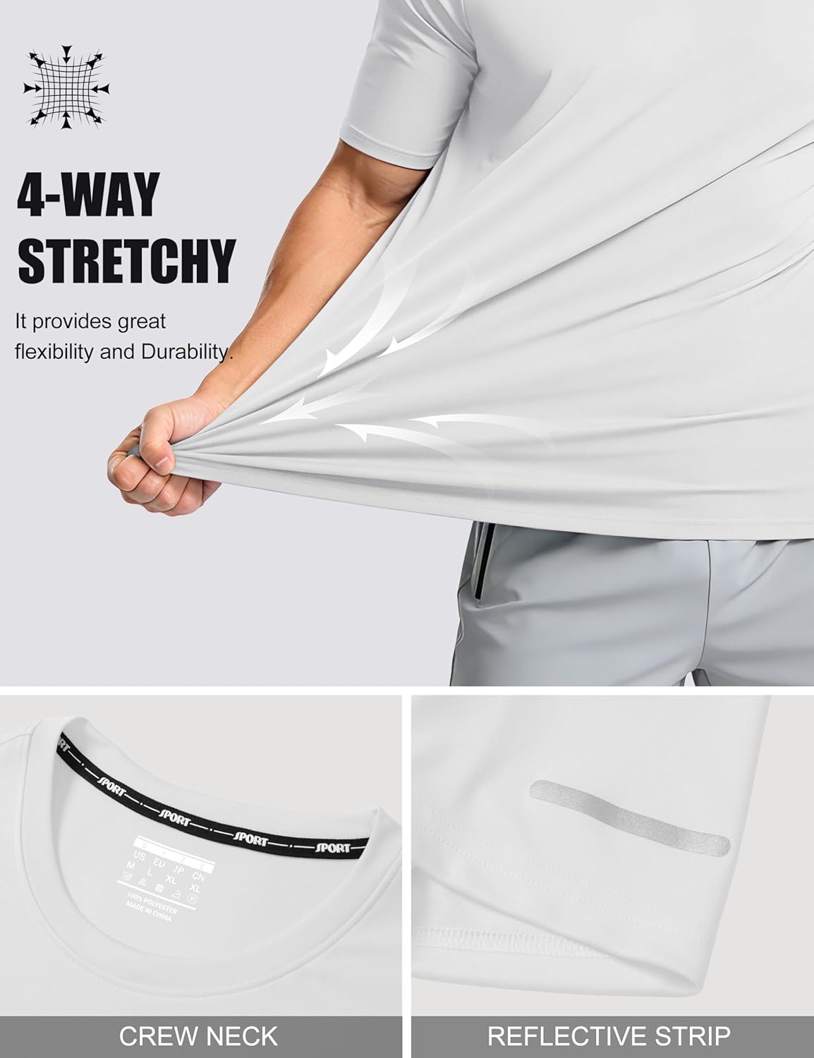 ” MAGCOMSEN Men’s Short Sleeve Dry Fit Athletic T Shirts UPF 50+ Running Gym Workout Tops Moisture Wicking Cooling Shirts Material: Polyester. UPF 50+, quick dry, moisture wicking, breathable, lightweight, 4-way stretch, soft and comfortable. Design: Classic short sleeve crew neck style, tag-free design and solid color. Occasion: Perfect for sports, workout, running, hiking and casual wear.”