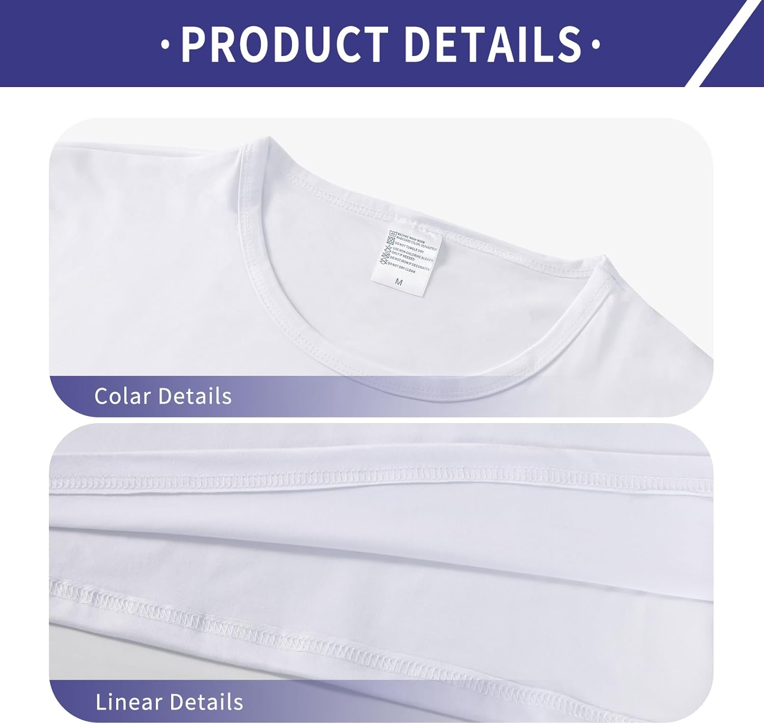 The METFUIN 6 Pack Polyester Adult Tshirts for Sublimation are the perfect blank canvas for your creative designs. These white crew neck short sleeve t-shirts for men are made of high-quality polyester, ensuring durability and vibrant color transfer during the sublimation process. With a comfortable and relaxed fit, these tees are ideal for everyday wear or as a base layer for your custom apparel business. The pack includes six shirts, providing ample supply for your printing needs. Whether you’re a hobbyist or a professional, these sublimation-ready t-shirts offer a versatile and affordable option for bringing your artwork to life on fabric. Unleash your creativity and create unique, one-of-a-kind designs with these blank polyester tees.