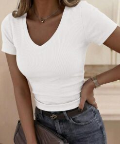 Summer V Neck Tops for Women Ribbed Knit Short Sleeve Shirts Cute Summer Tops for Women Are Versatile and Essential Piece for Ladies Closet Love Your Curves In Our Slim-Fit Tee Going Out Tops for Women Solid Color Basic Tees Summer Outfits Womens Casual Tops Can Be Worn As a Layering Tops or Worn Alone for a Stylish Summer Shirt Your New Favorite Basic Tee Is Here Plain Slimming Casual Tops for Women Cute V Neck T Shirts Stretchy Womens V Neck T Shirts Accentuate your Curves Without Feeling Tight Flattering V-Neckline Frames Your Face Comfy Fitted Layering Tops for Women Date Night Outfits Date Night Tops for Women Offer a Slim Fit Effect and Comfortable Wearing Experience Slim Fit Creates a Sleek and Confident Silhouette Trendy Ladies Tops and Blouses Soft Basic Tops for Woman As a Solid Color Basic Top, This Womens Tee Is Your Go-To for Endless Styling Options Your Wardrobe Is Waiting for This Staple Versatile Short Sleeve Western Tops for Women Shirts Dressy Casual From Running Errands to a Casual Date Night, This Womens Tops Dressy Casual Has you Covered Dress it up or down??the Choice Is Yours