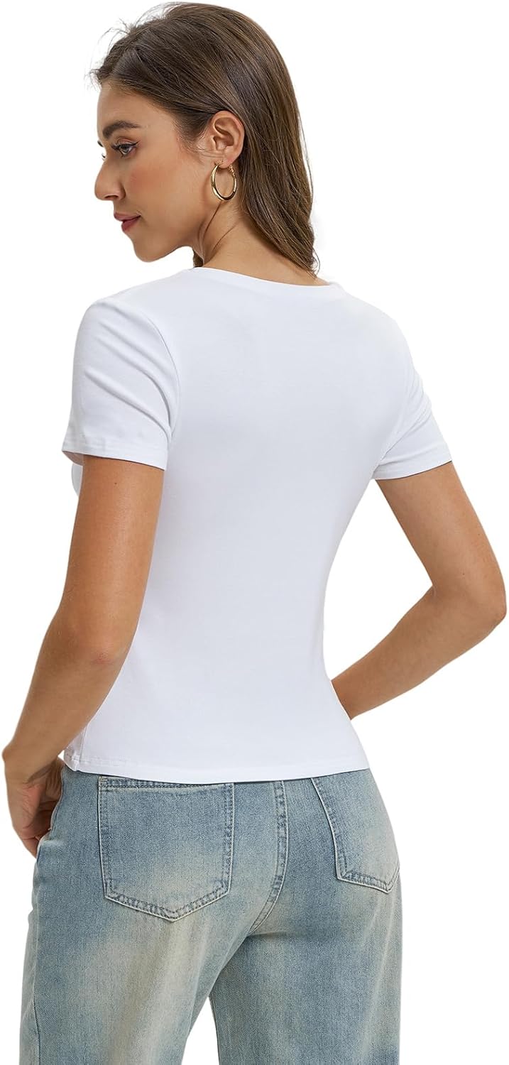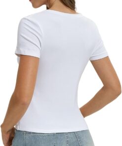 Women Casual Basic T Shirts Top Y2k Crop Tops Trendy Tight Tshirts Tee Slim Fit Clothes