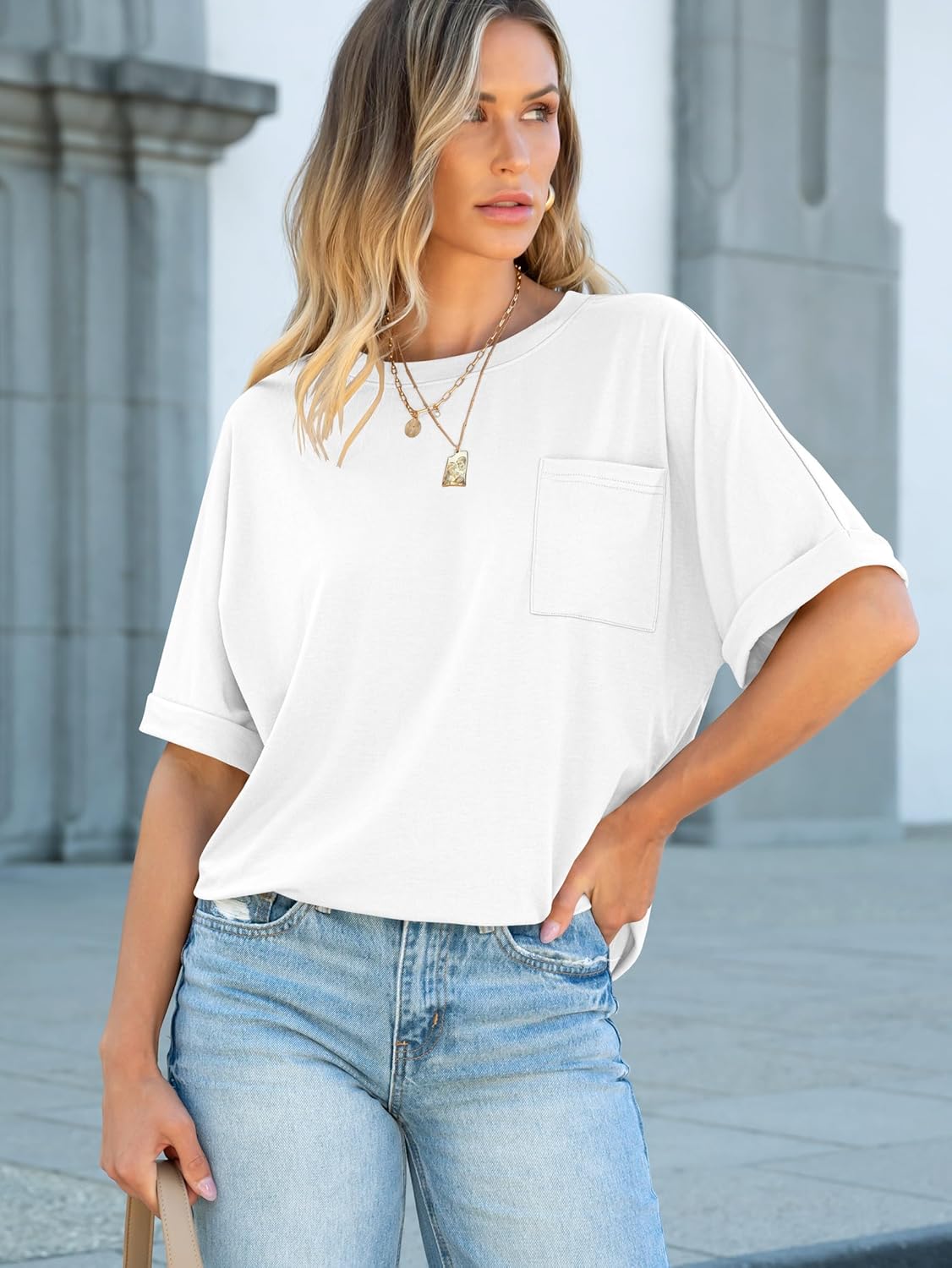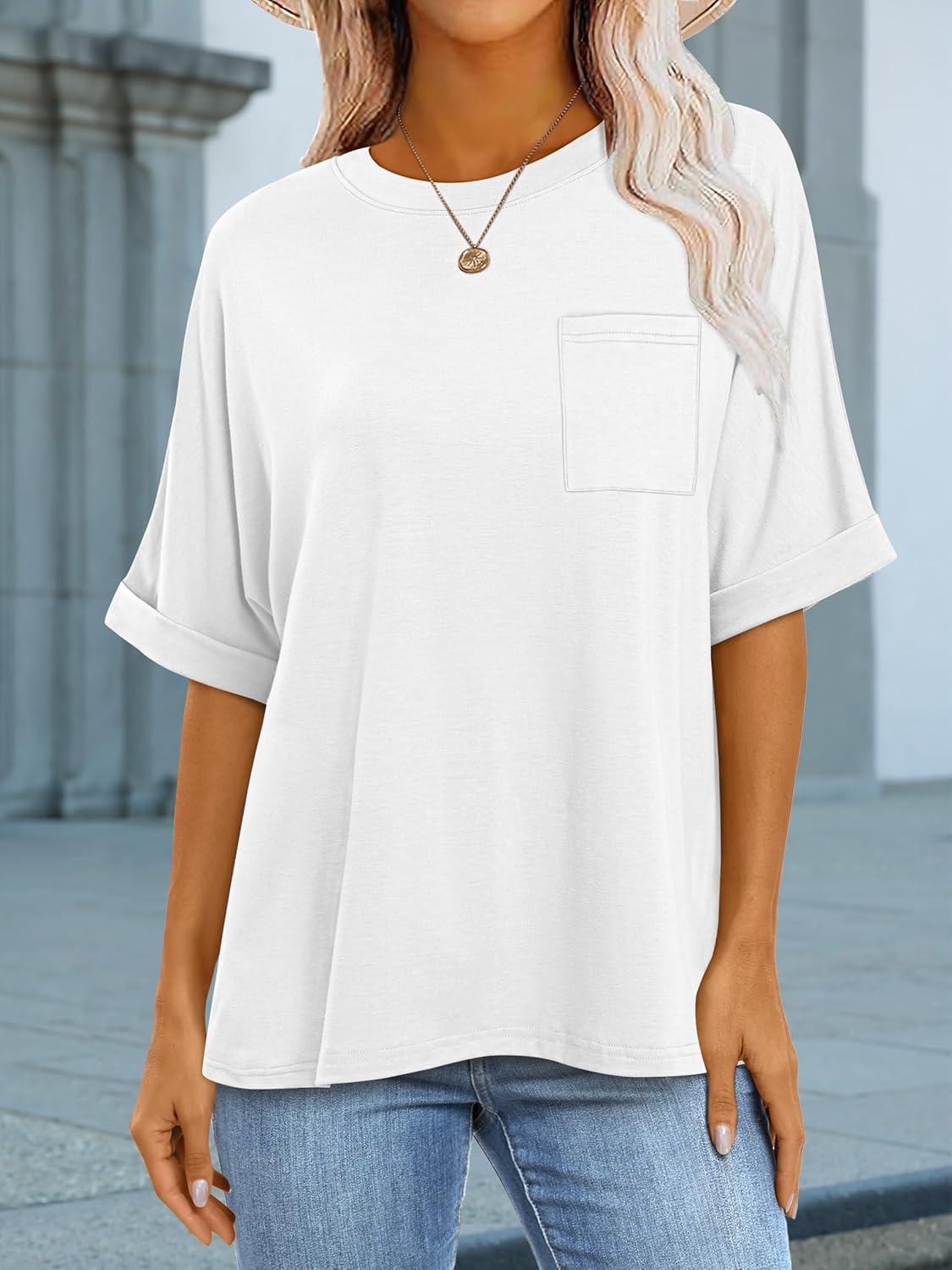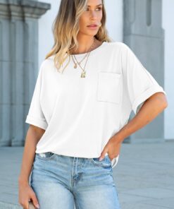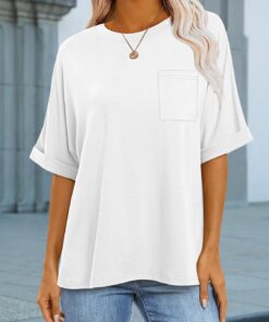 Women Oversized T Shirts Short Sleeve Summer Casual Loose Top Basic Tee with Pocket