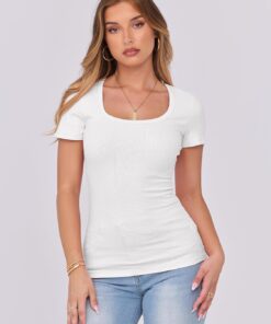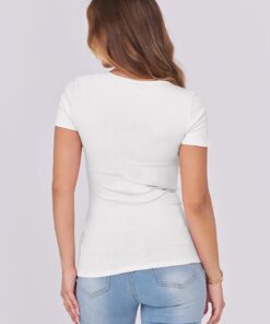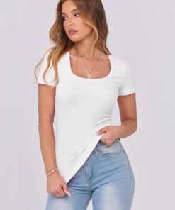 Be the first to review “Women Short Sleeve Tops Scoop Neck Ribbed Knit Slim Fitted Basic Tee Shirt Casual Summer Clothes 2026 Spring Outfits” Cancel reply