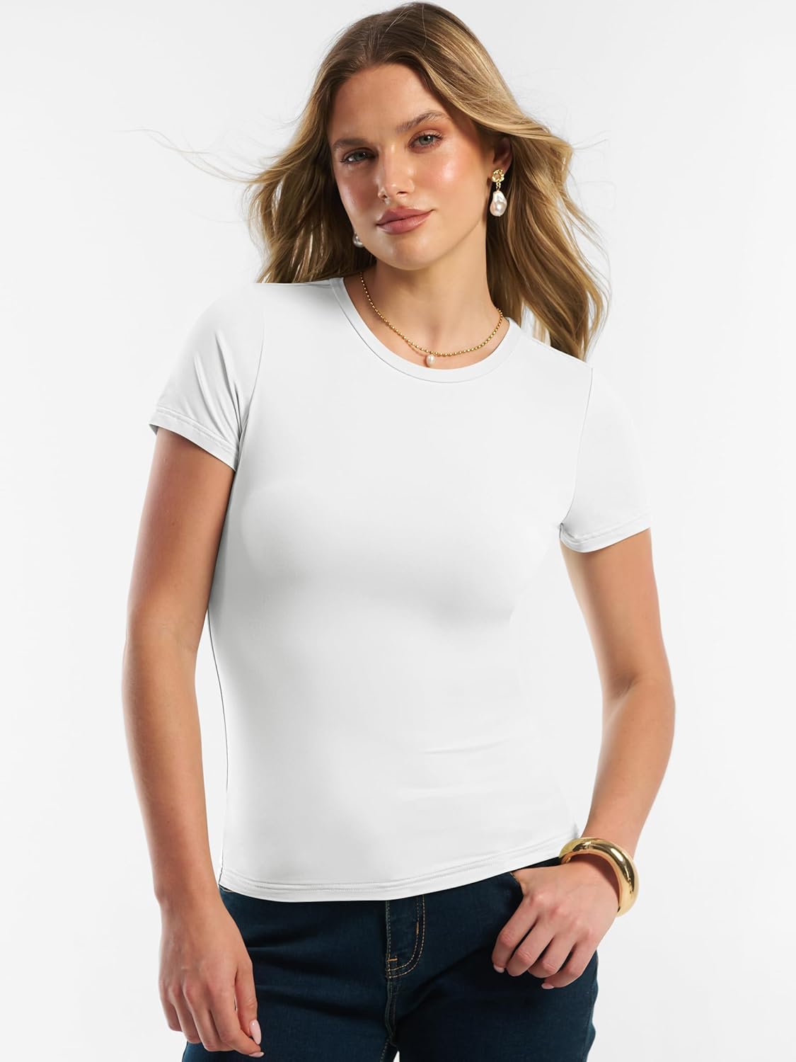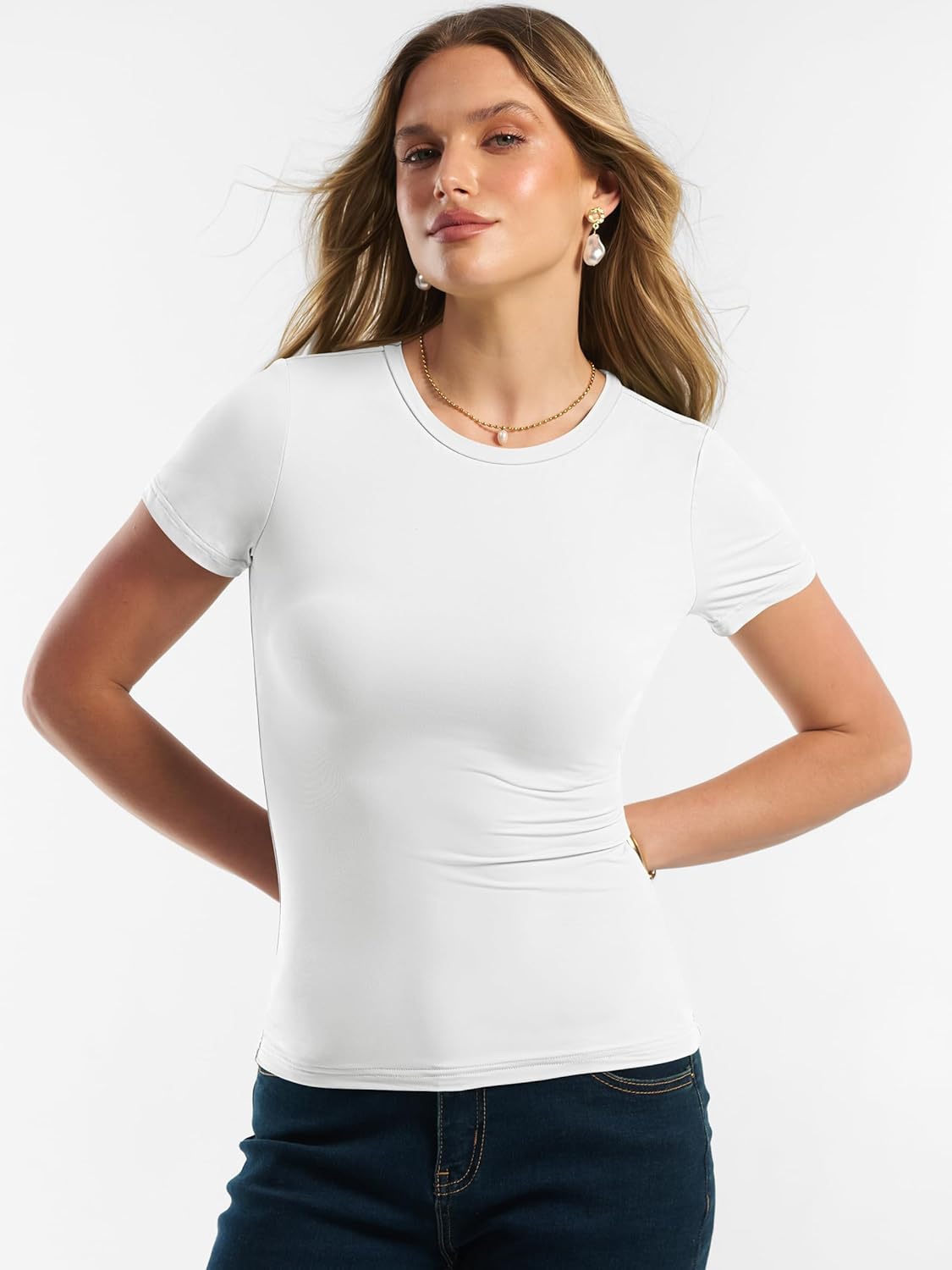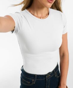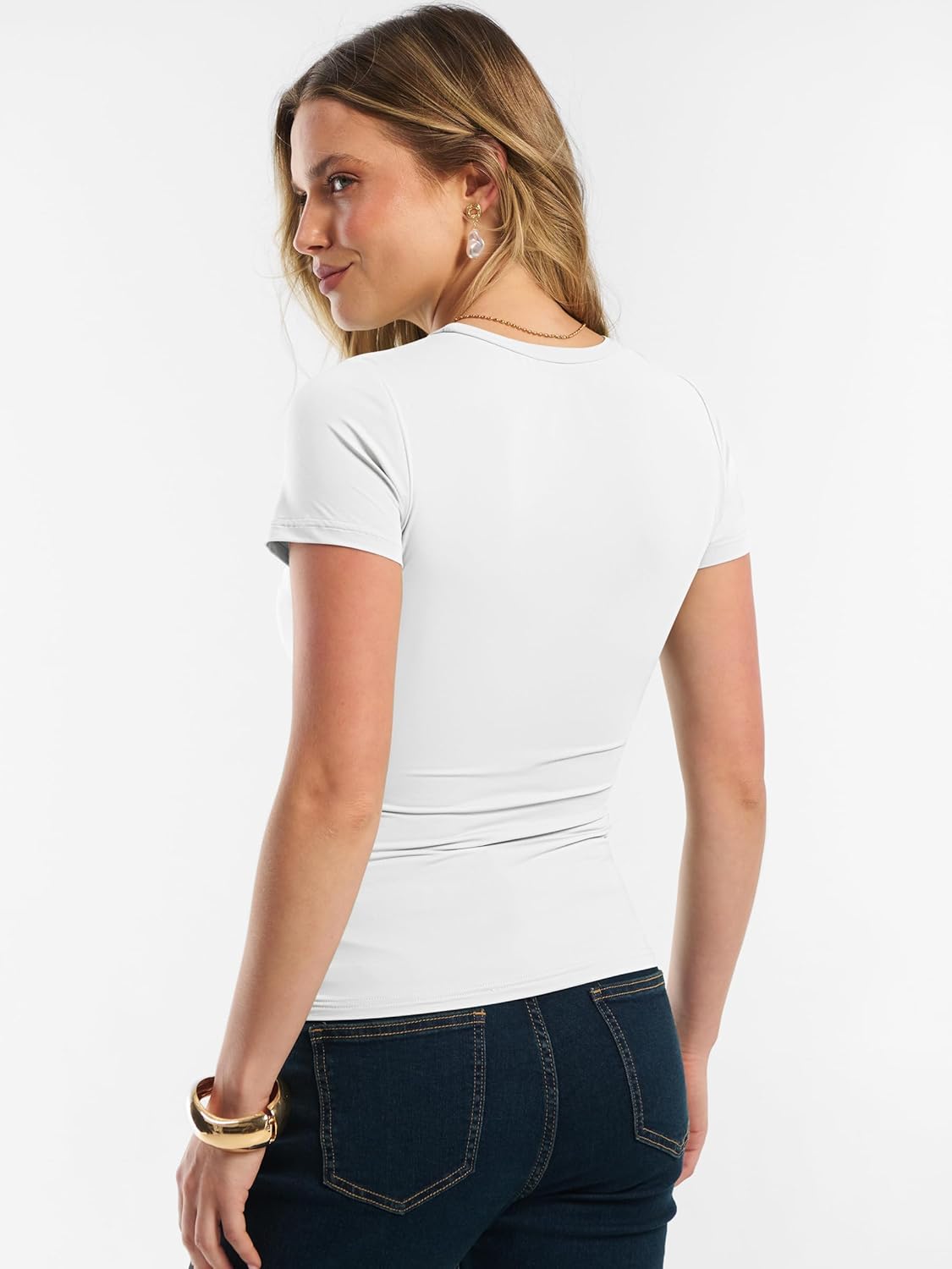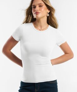 Women Short Sleeve Tops Summer 2026 Double Lined Crewneck T Shirt Basic Tight Workout Tee Y2k Clothes