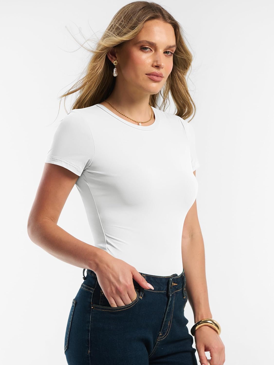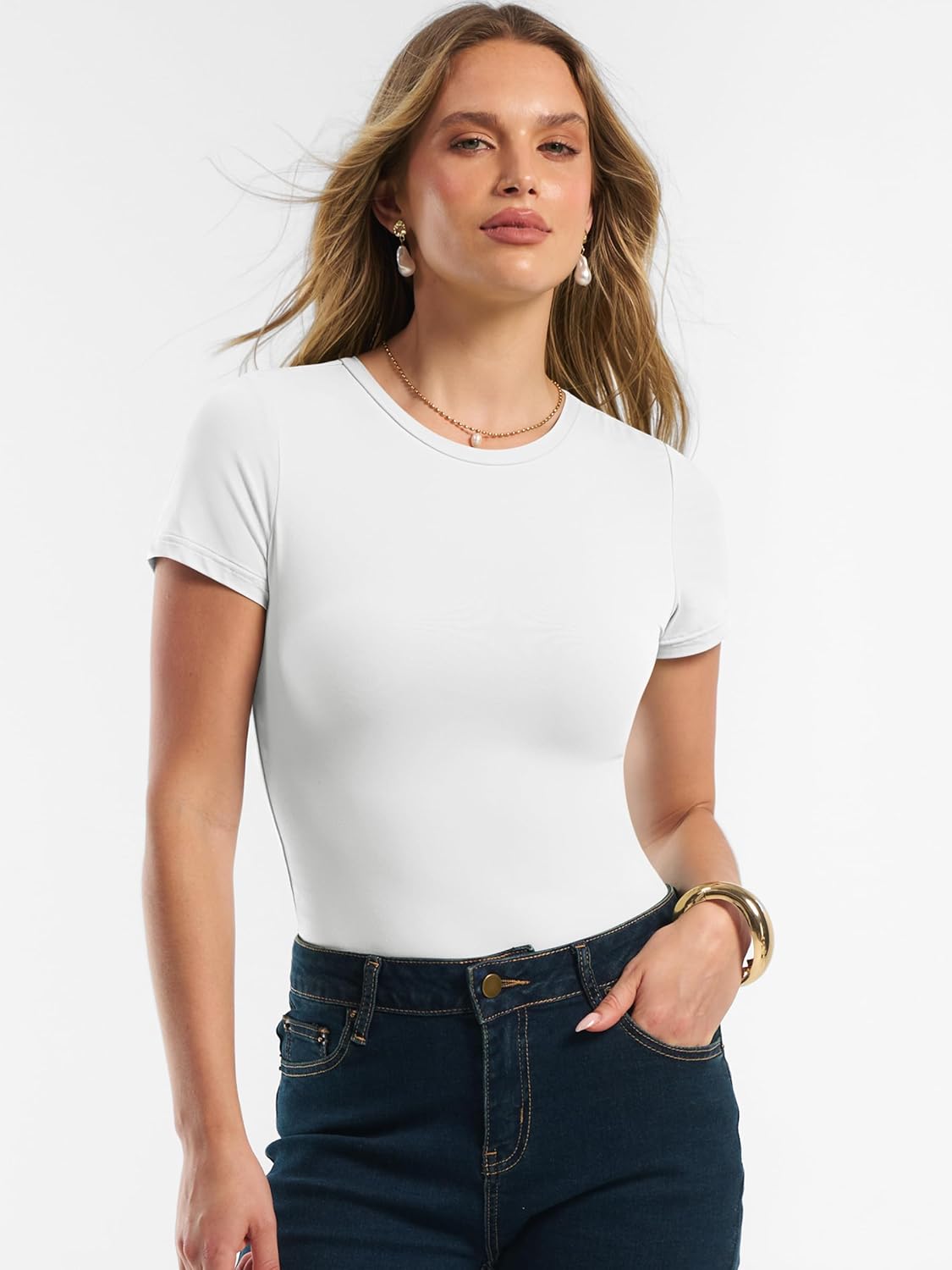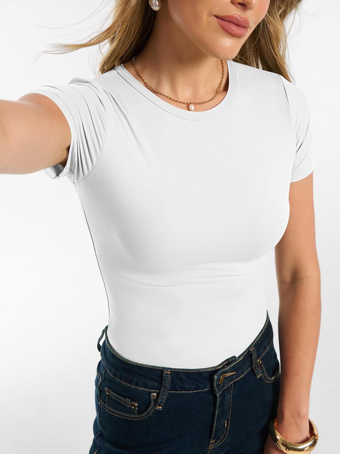 Women Short Sleeve Tops Summer 2026 Double Lined Crewneck T Shirt Basic Tight Workout Tee Y2k Clothes
