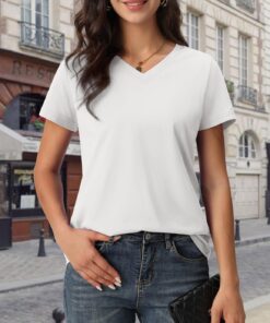 Women’s Cotton T Shirt V-Neck Short Sleeve Shirt Classic-Fit Casual Breathable Tee Summer Basic Tops