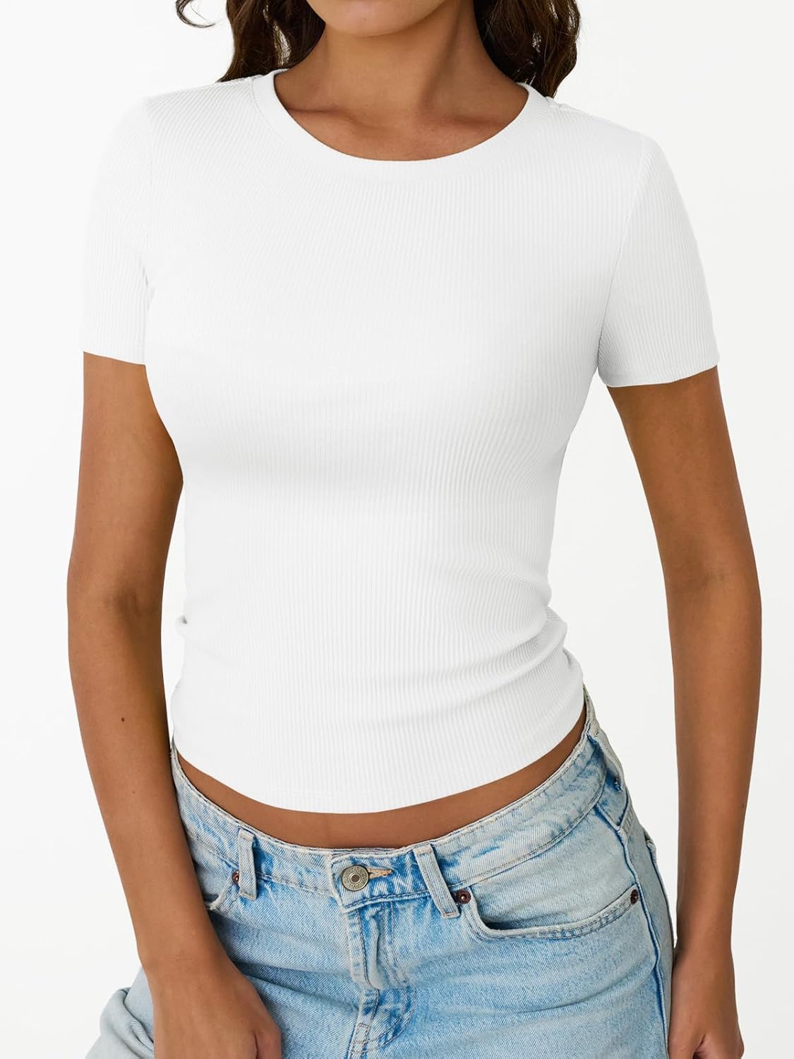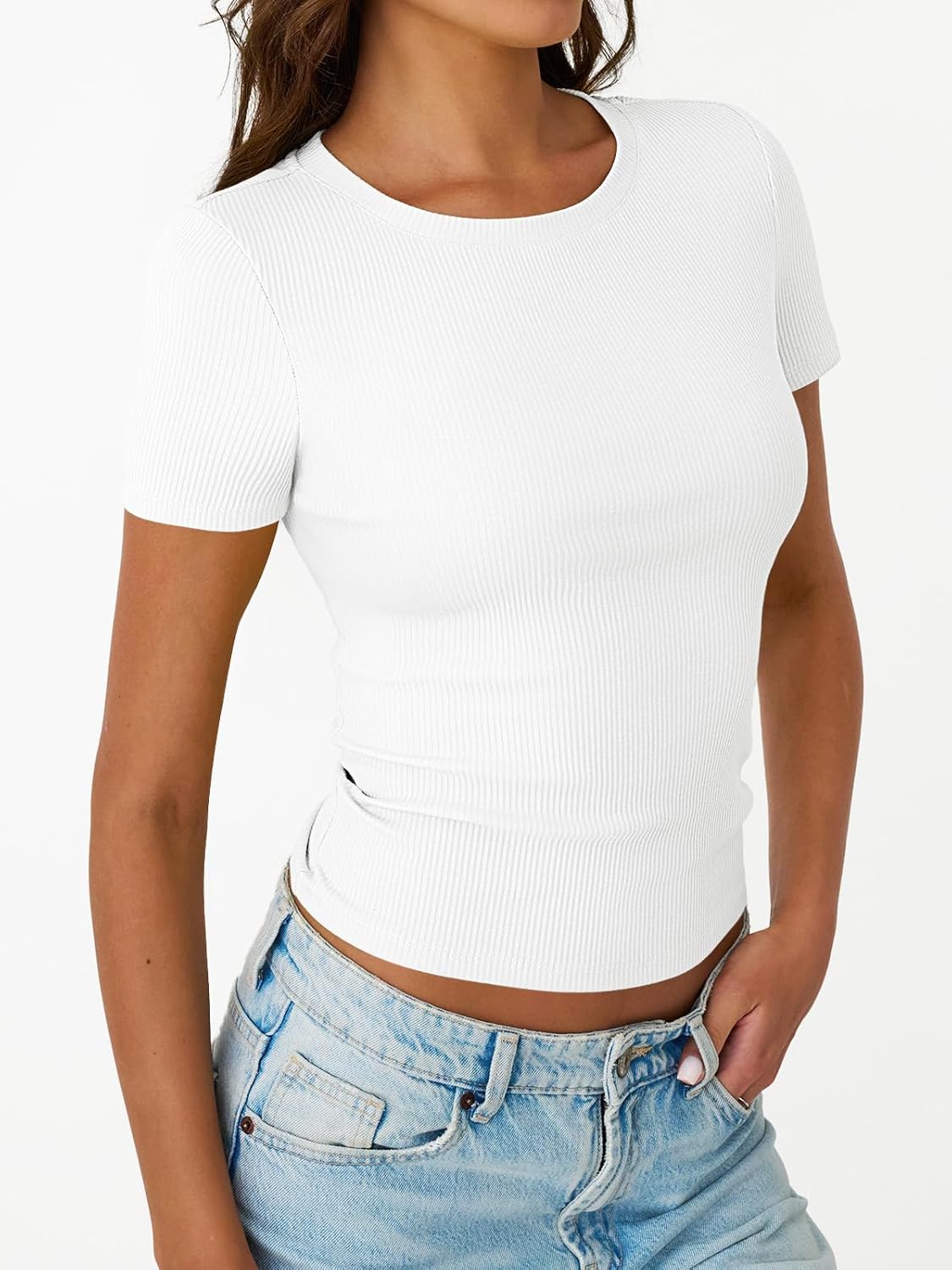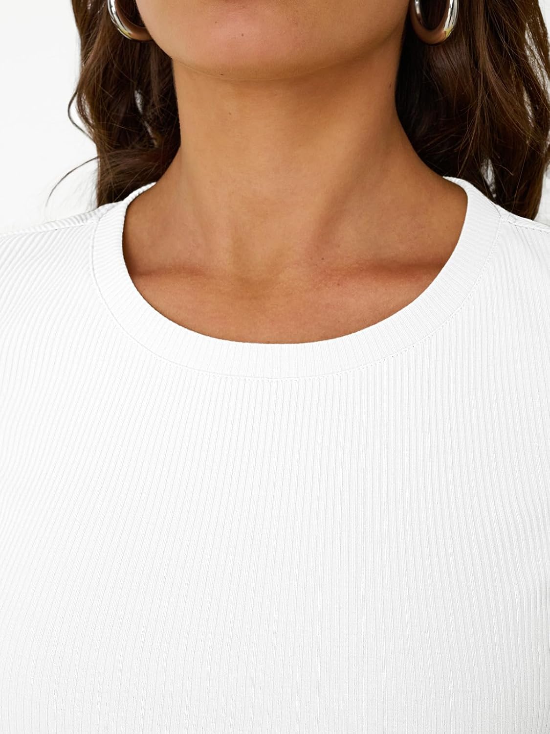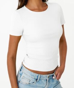 Women’s Crewneck Ribbed Knit Fitted T-Shirt