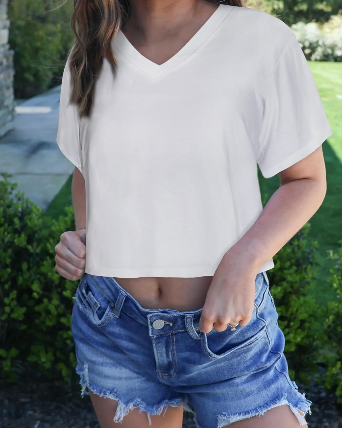 Summer crop t shirts are designed for trendy women, with a v-neck and crop feature. It can showcases your charming waistline.