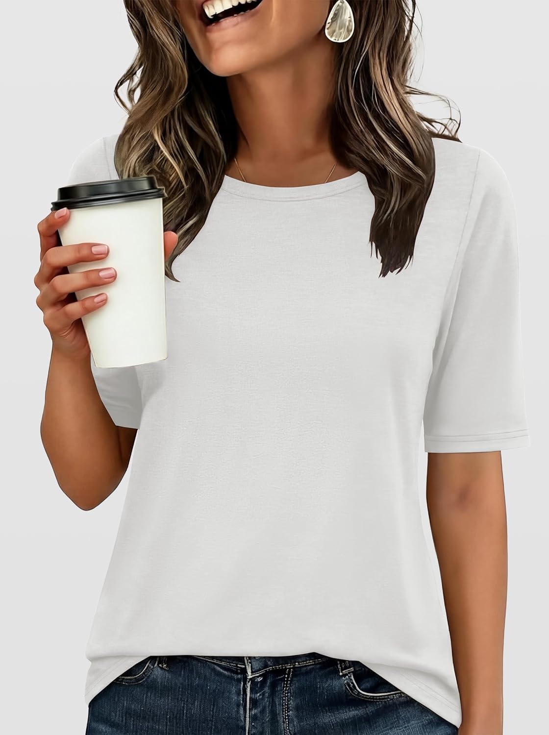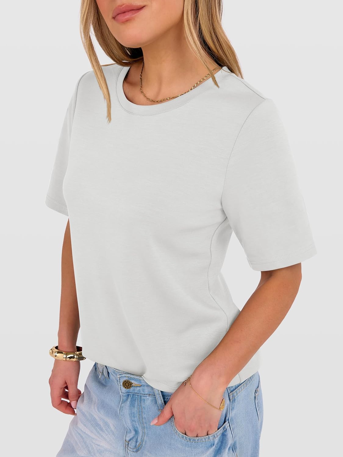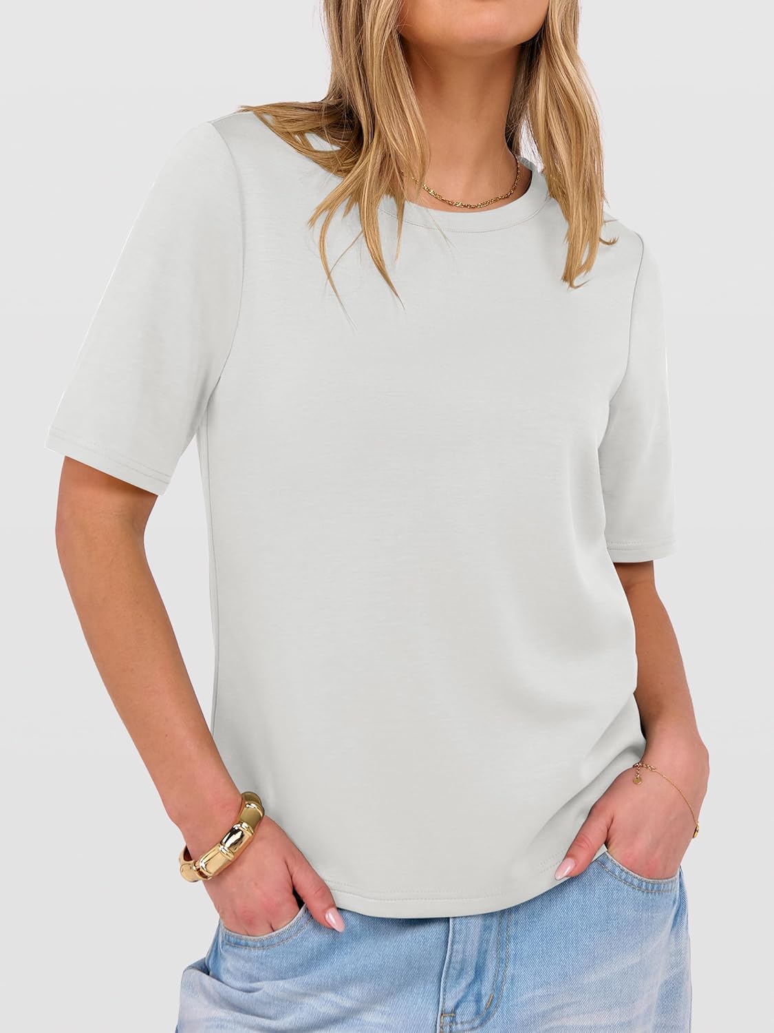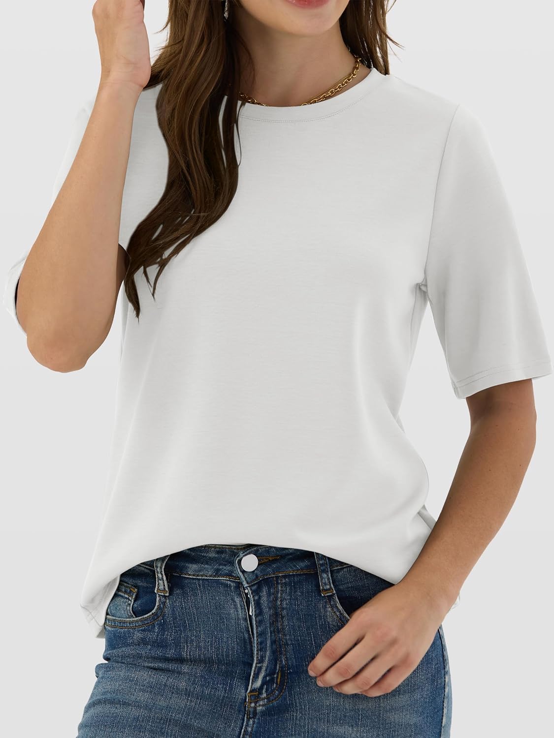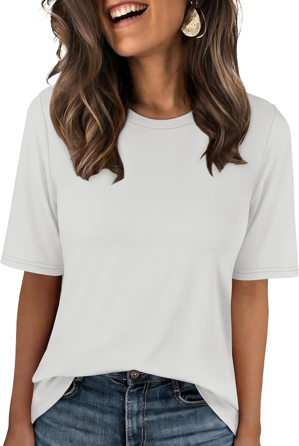 Women??s Half Sleeve Tops Summer Basic Tee Crew Neck Casual Soft Wrinkle-Free Fabric T-Shirts 2026 Trendy Clothes