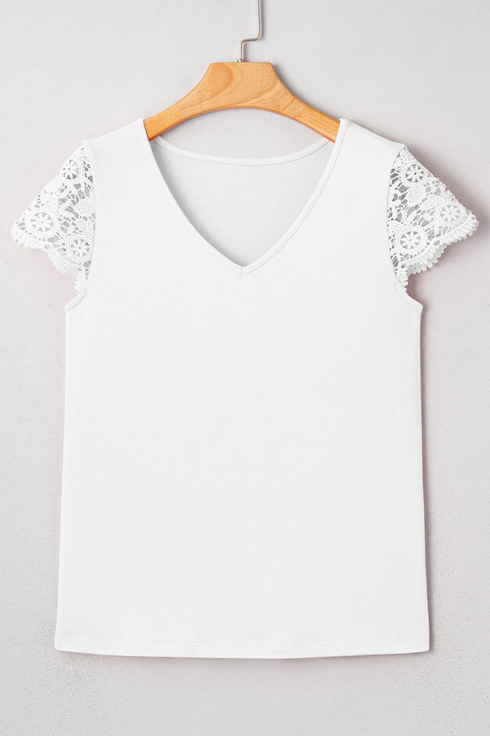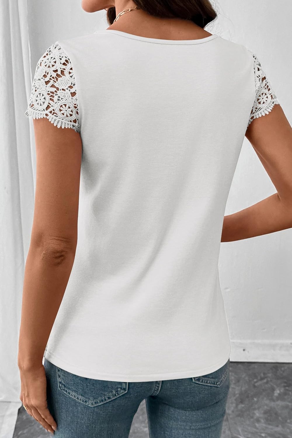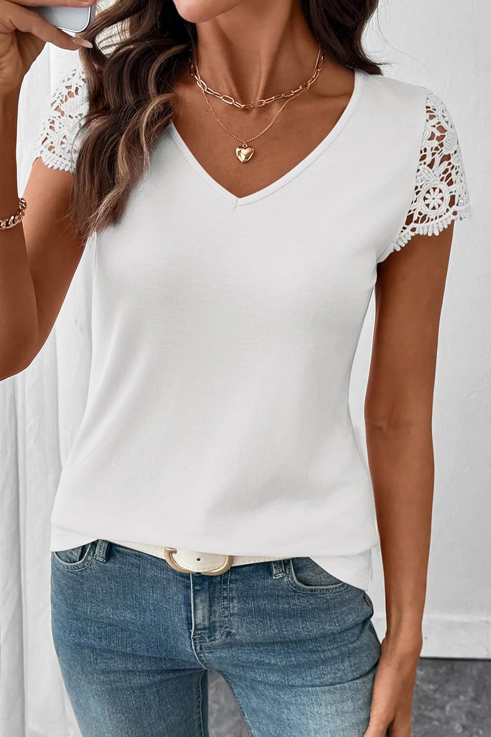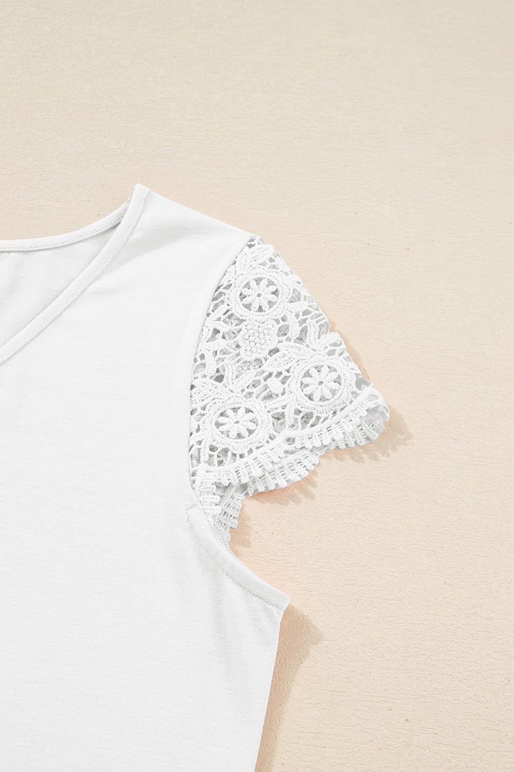 Womens Lace Tops Casual V Neck Short Sleeve Shirts Loose Tunic Top 2026