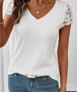 Be the first to review “Womens Lace Tops Casual V Neck Short Sleeve Shirts Loose Tunic Top 2026” Cancel reply